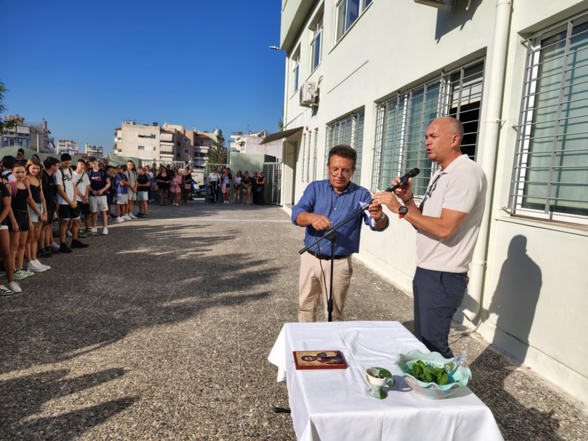 "Πρώτο σχολικό κουδούνι και αγιασμός σήμερα σε όλα τα σχολεία, τα οποία γέμισαν με χαρούμενες φωνές και φωτεινά χαμόγελα.