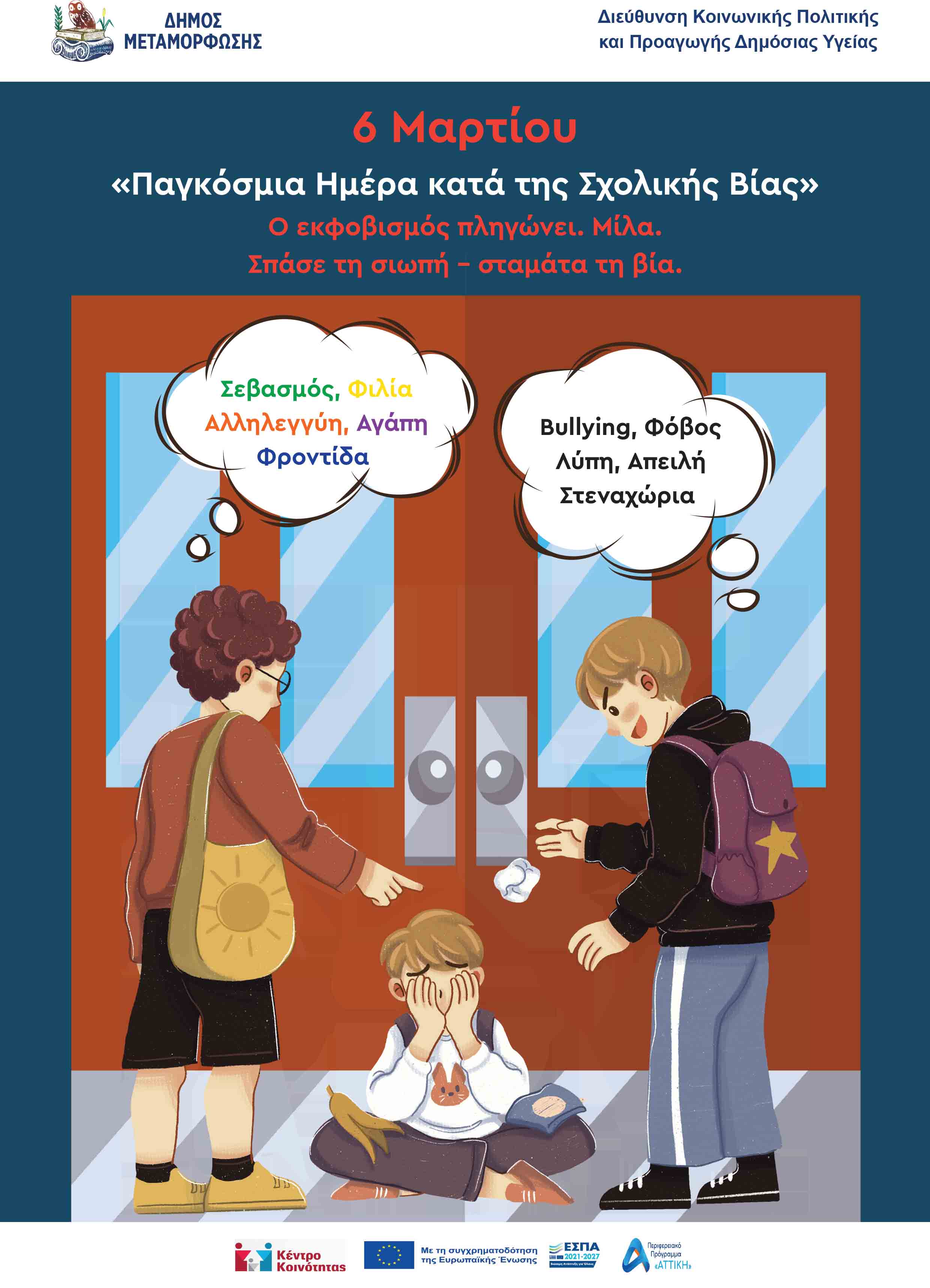 Με αφορμή την Πανελλήνια Ημέρα κατά της Σχολικής Βίας και του Εκφοβισμού (6 Μαρτίου), η Κοινωνική Υπηρεσία και το Κέντρο Κοινότητας έστειλαν το δικό τους ηχηρό μήνυμα μέσα από δράσεις ευαισθητοποίησης που πραγματοποιήθηκαν στις 3 και 4 Μαρτίου.