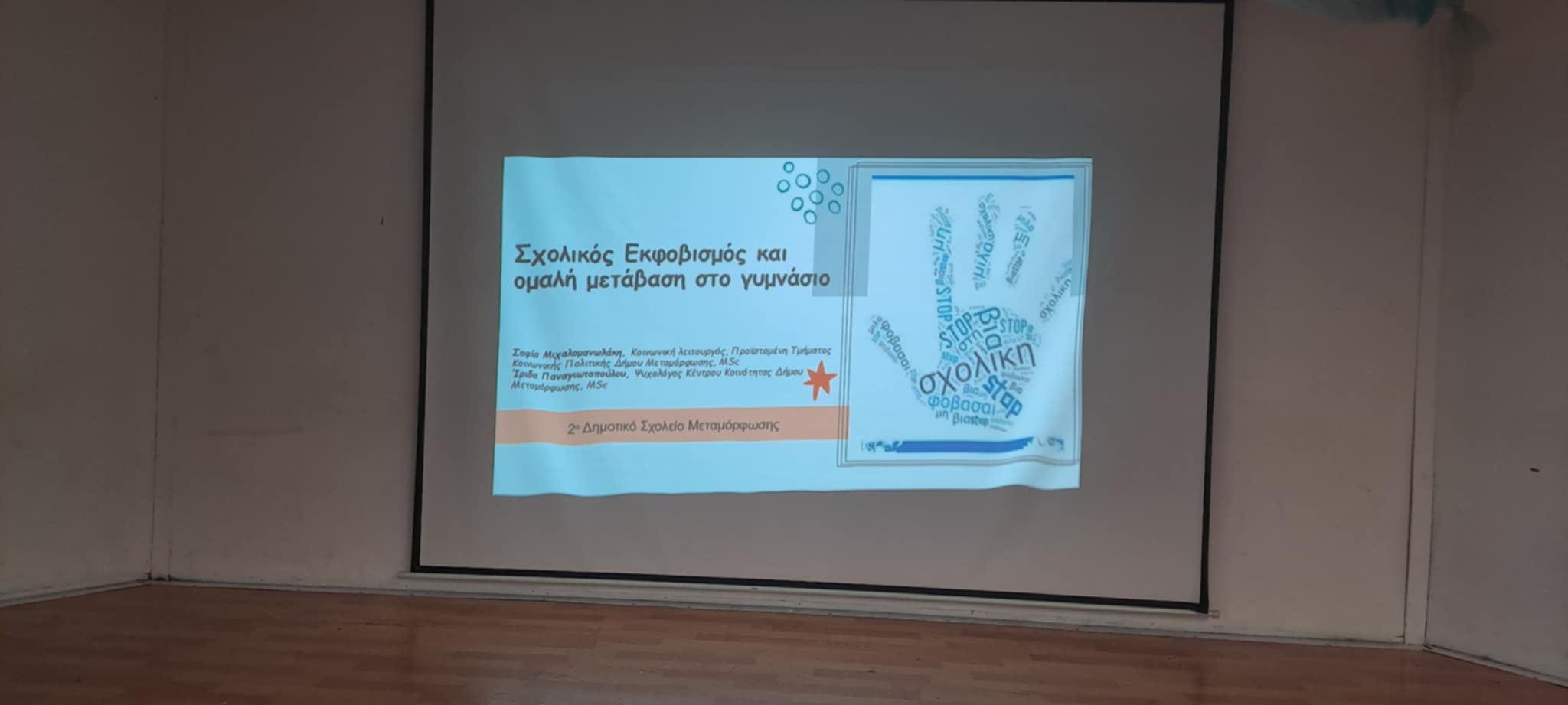 Ενημερωτική ομιλία για το σχολικό εμφοβισμό και ομαλή μετάβαση στο Γυμνάσιο σε γονείς του 2ου Δημοτικού Σχολείου.