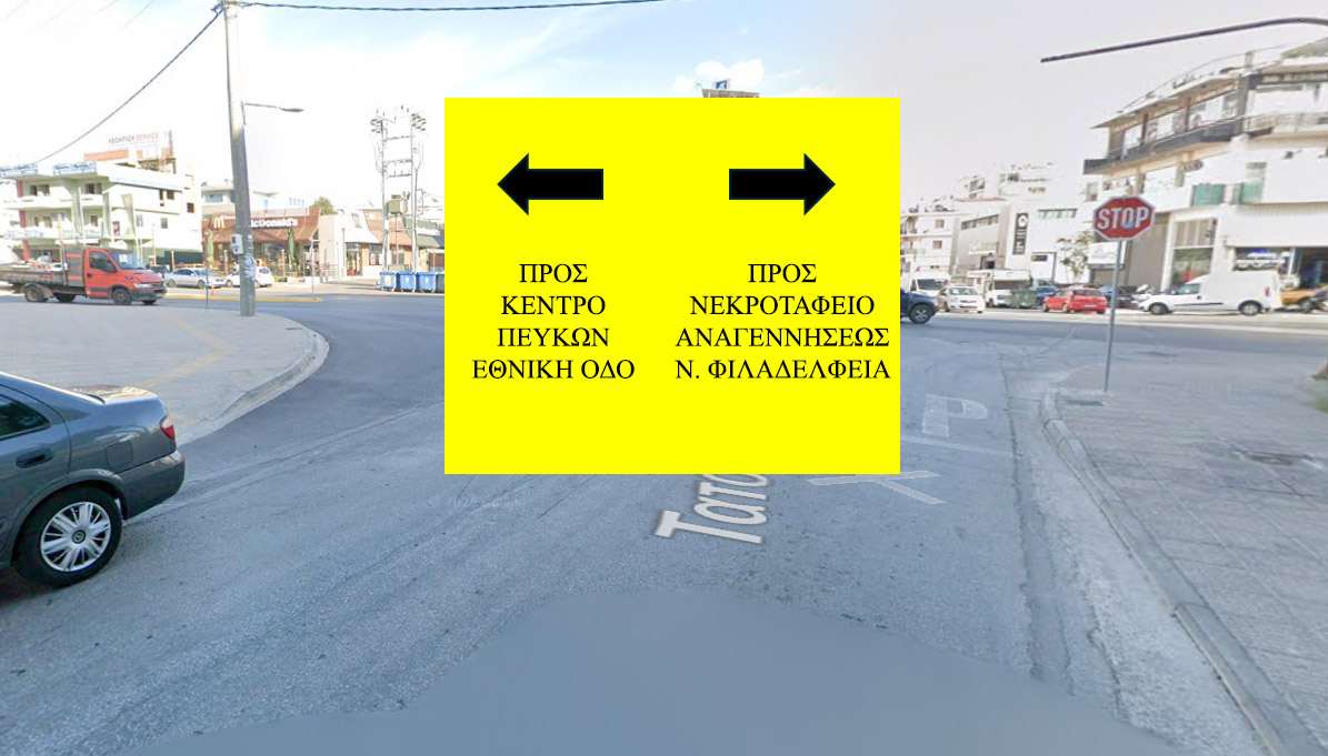 Τα οχήματα που κινούνται αριστερά της νησίδας θα έχουν δυνατότητα αριστερής στροφής προς την οδό Τατοΐου με κατεύθυνση προς Ν. Φιλαδέλφεια, μέσω του υπάρχοντος οδικού συνδέσμου (μεταξύ των οδών Τατοΐου και Δροσίνη), ο οποίος αντιδρομείται, ενώ η ευθεία κίνηση δεν θα επιτρέπεται, για λόγους οδικής ασφάλειας.