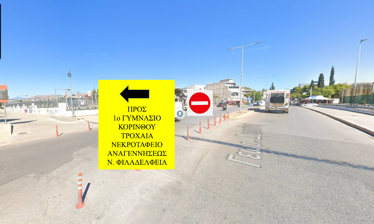 ➢ Μονοδρόμηση της οδού παράπλευρα της Αττικής Οδού, από Δροσίνη έως Σωκράτους, με κατεύθυνση προς Σωκράτους.