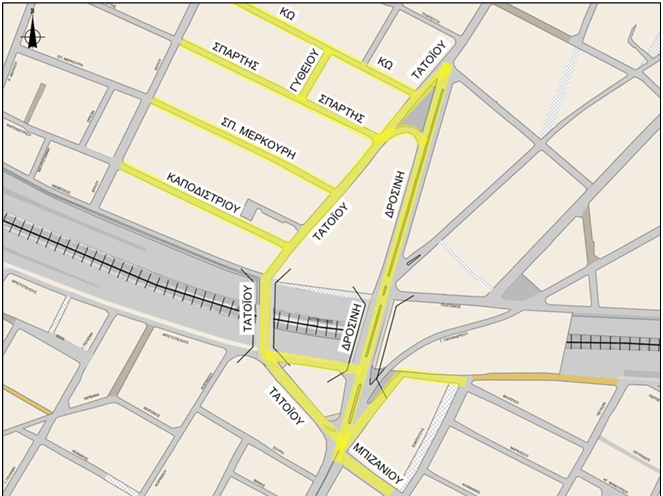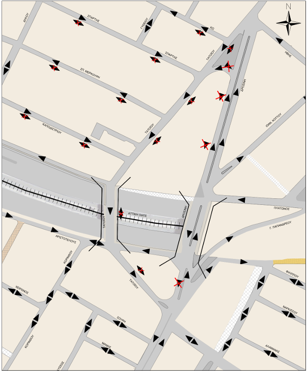 Σημειώνεται πως, μέσω κατάλληλης σήμανσης, θα δίνεται η δυνατότητα για διέλευση των οχημάτων εκατέρωθεν της κεντρικής νησίδας της οδού. Τα οχήματα που κινούνται δεξιά της νησίδας, θα καταλήγουν στην οδό Τατοΐου με κατεύθυνση προς την Εθνική Οδό.