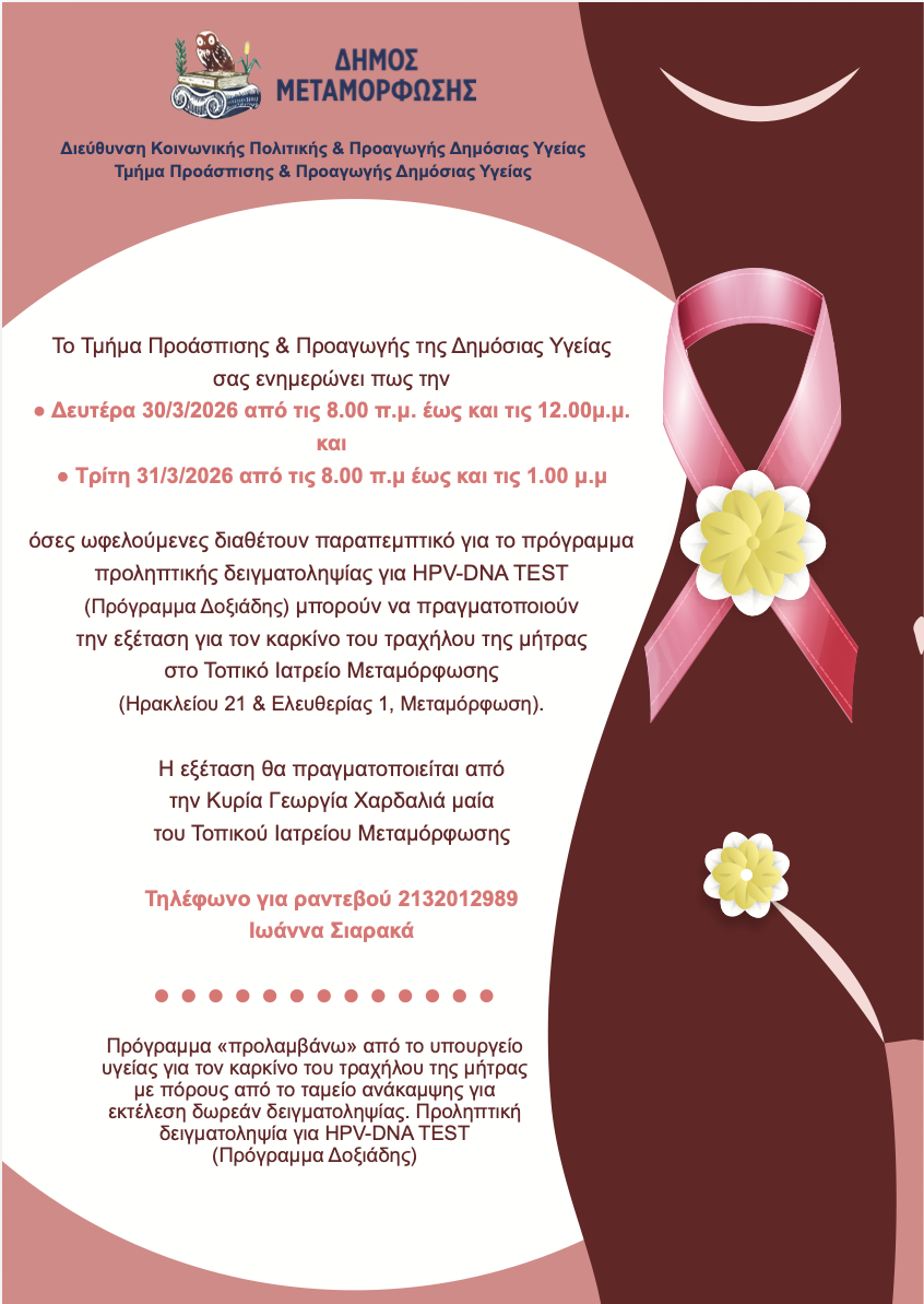 Η δράση έλαβε χώρα στο Α'ΚΑΠΗ, του Δήμου Μεταμόρφωσης, τηνΠαρασκευή 20 Μαρτίου,και εξετάστηκαν σαράντα (40) κάτοικοι του Δήμου.