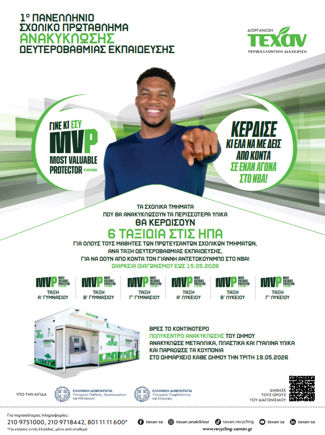 Μην χάσετε την ευκαιρία να συμμετάσχετε στο 1ο Πανελλήνιο Σχολικό Πρωτάθλημα Ανακύκλωσης (μέχρι 15 Μαρτίου οι συμμετοχές).