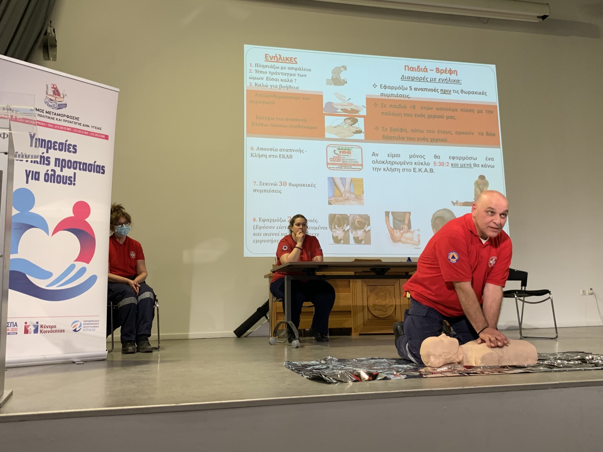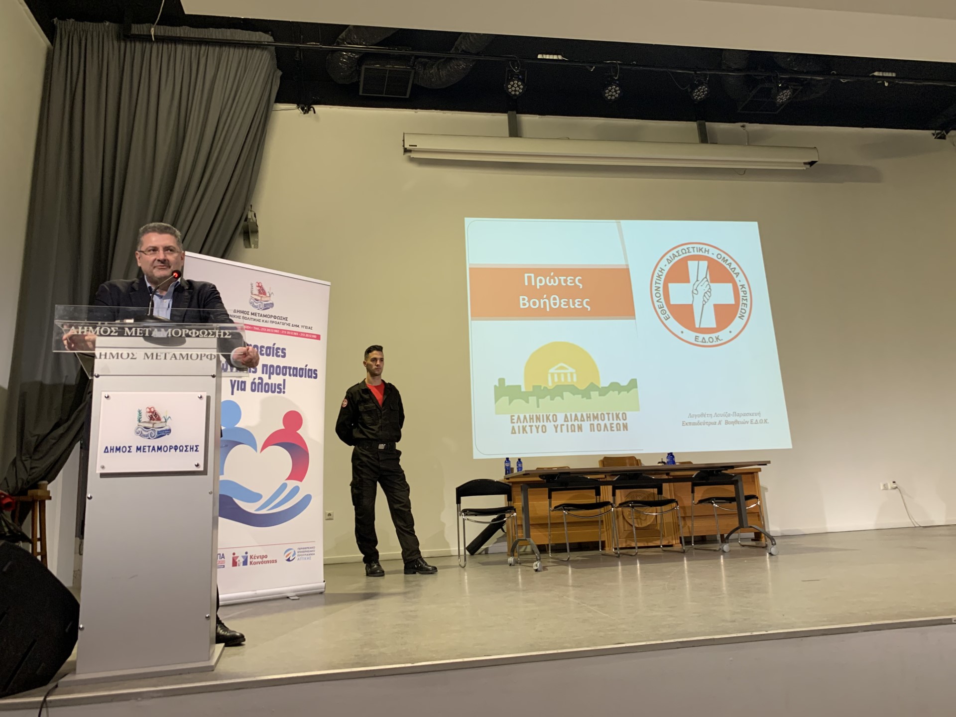 Το Τμήμα Προάσπισης & Προαγωγής Δημόσιας Υγείας της Διεύθυνσης Κοινωνικής Πολιτικής & Προαγωγής Δημόσιας Υγείας του Δήμου Μεταμόρφωσης σε συνεργασία με το Ελληνικό Διαδημοτικό Δίκτυο Υγιών Πόλεων, και τους Διασώστες της Εθελοντικής Διασωστικής Ομάδας Κρίσεων ΕΔΟΚ, διοργάνωσε το Σάββατο 27 Ιανουαρίου 2024 στο Συνεδριακό Κέντρο Μεταμόρφωσης το εξαιρετικά χρήσιμο σεμινάριο Α’ Βοηθειών «Η γνώση σώζει ζωές».
