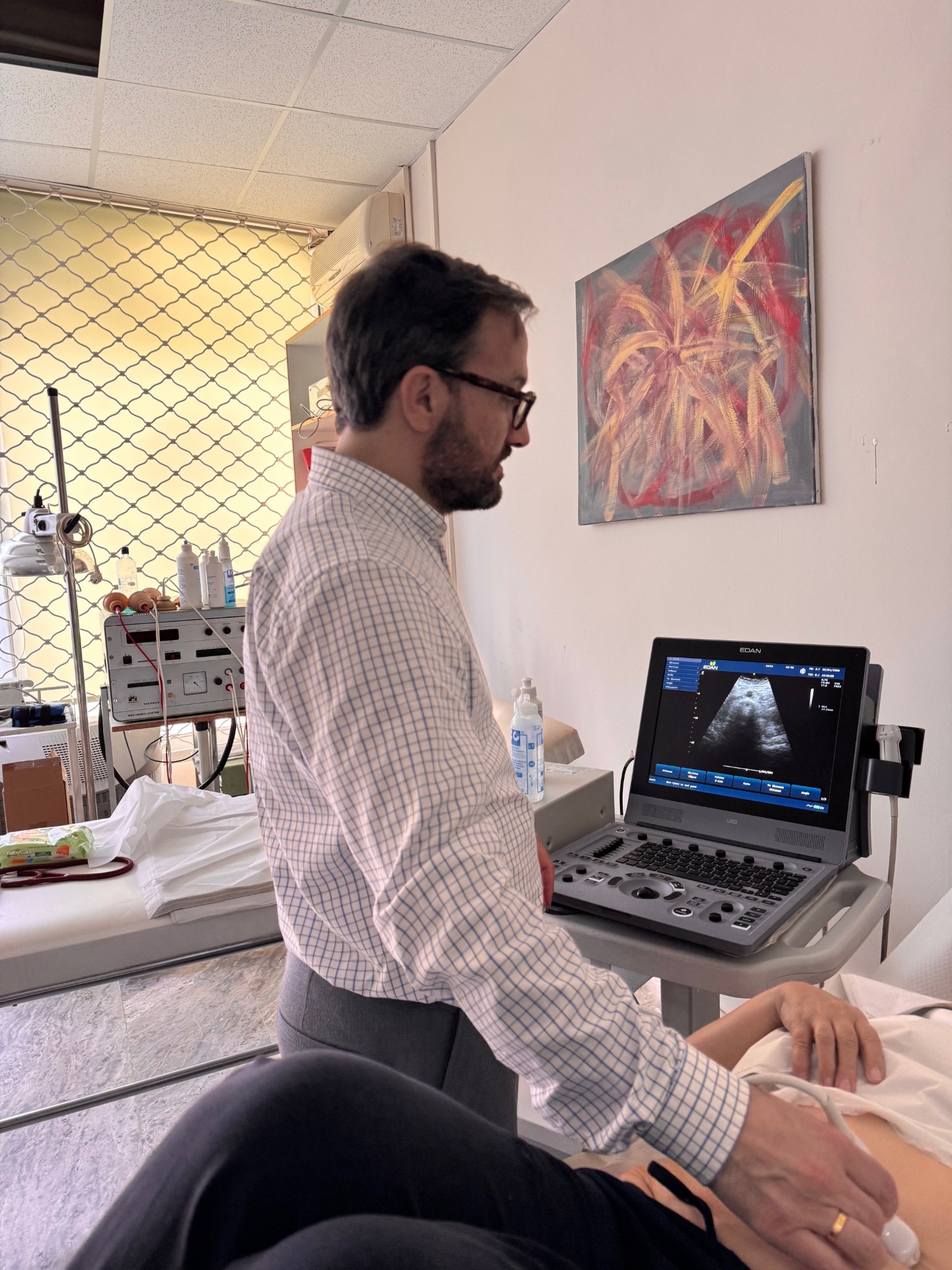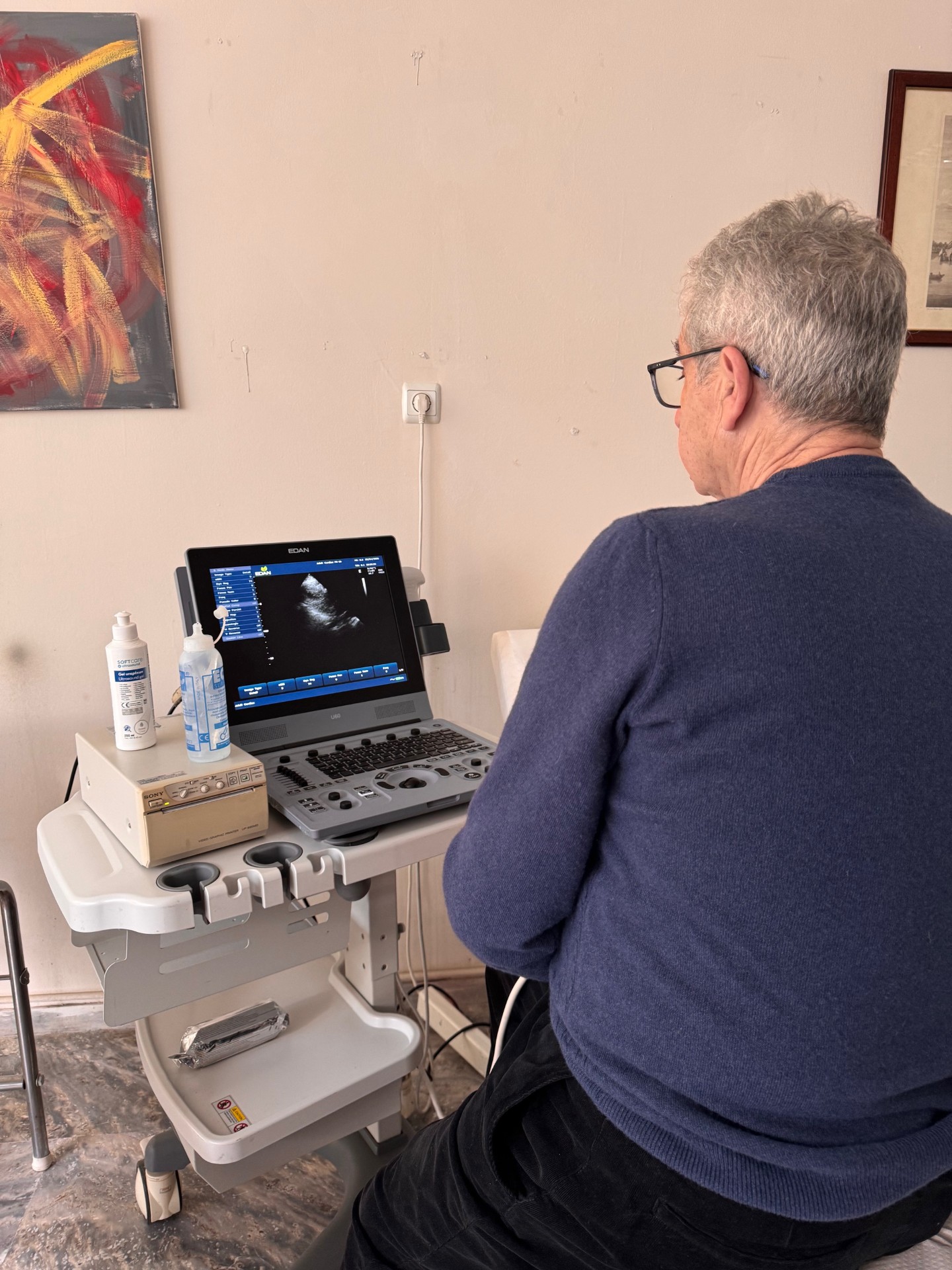 Η εξέταση πραγματοποιήθηκε από τον Αντιδήμαρχο Προάσπισης & Προαγωγής Υγείας ιατρό καρδιολόγο Παναγιώτη Λουσίδη σε συνεργασία με τον ιατρό αγγειοχειρουργό κ. Ιωάννη Τσάγκο, με χρήση του φορητού σύγχρονου υπερηχογράφου του Δήμου Μεταμόρφωσης στο χώρο του Α΄ ΚΑΠΗ Ν. Ιωνίας.