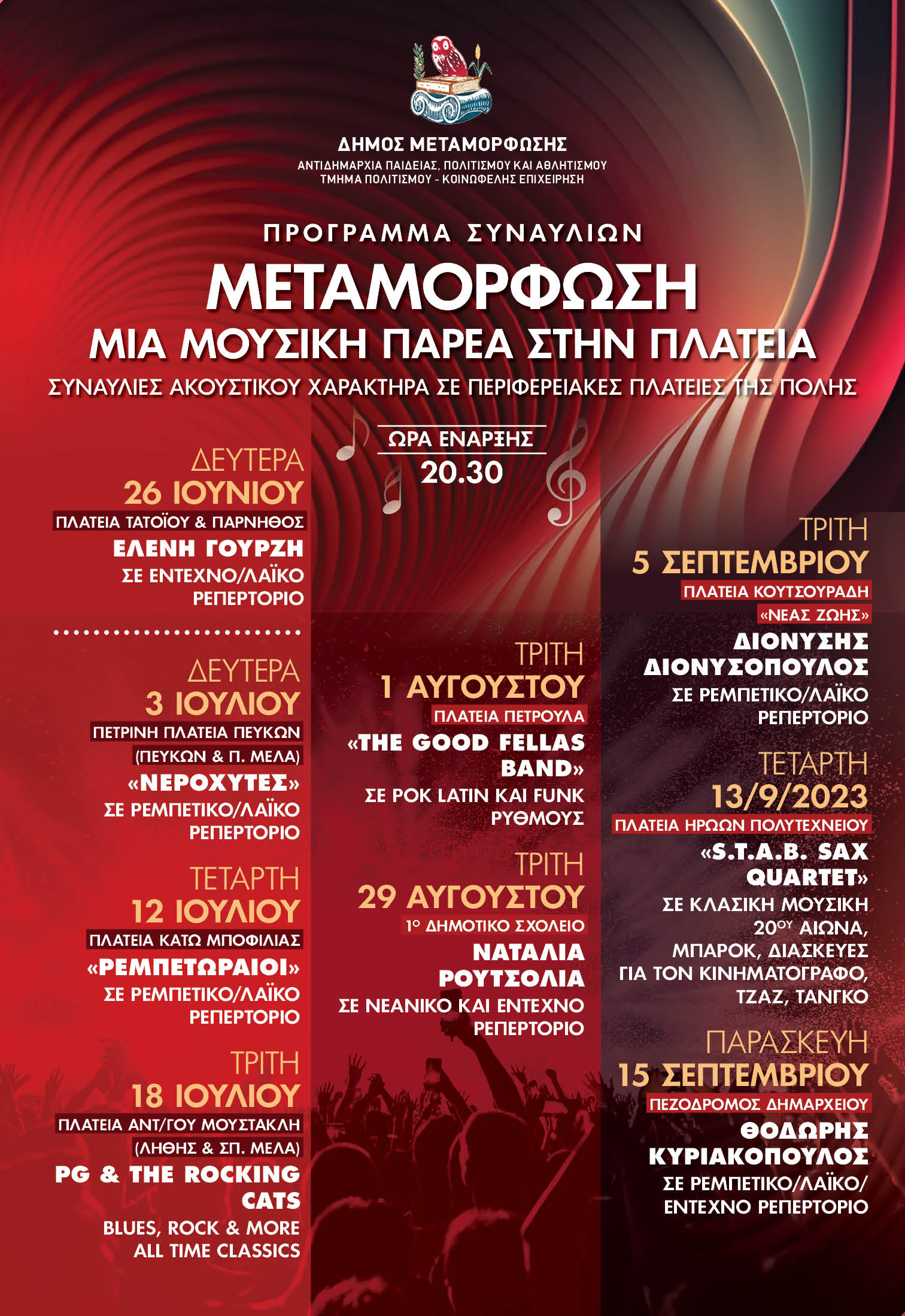 Η 4η κατά σειρά συναυλία για τη "Μουσική μας Παρέα", σε Βlues, rock, all time classics αυτή τη φορά, την προσεχή Τρίτη 18/7/2023 και ώρα 20:30, στην πλατεία Αντιστράτηγου Μουστακλή στα "Άσπρα χώματα" (Λήθης & Σπ. Μελά).