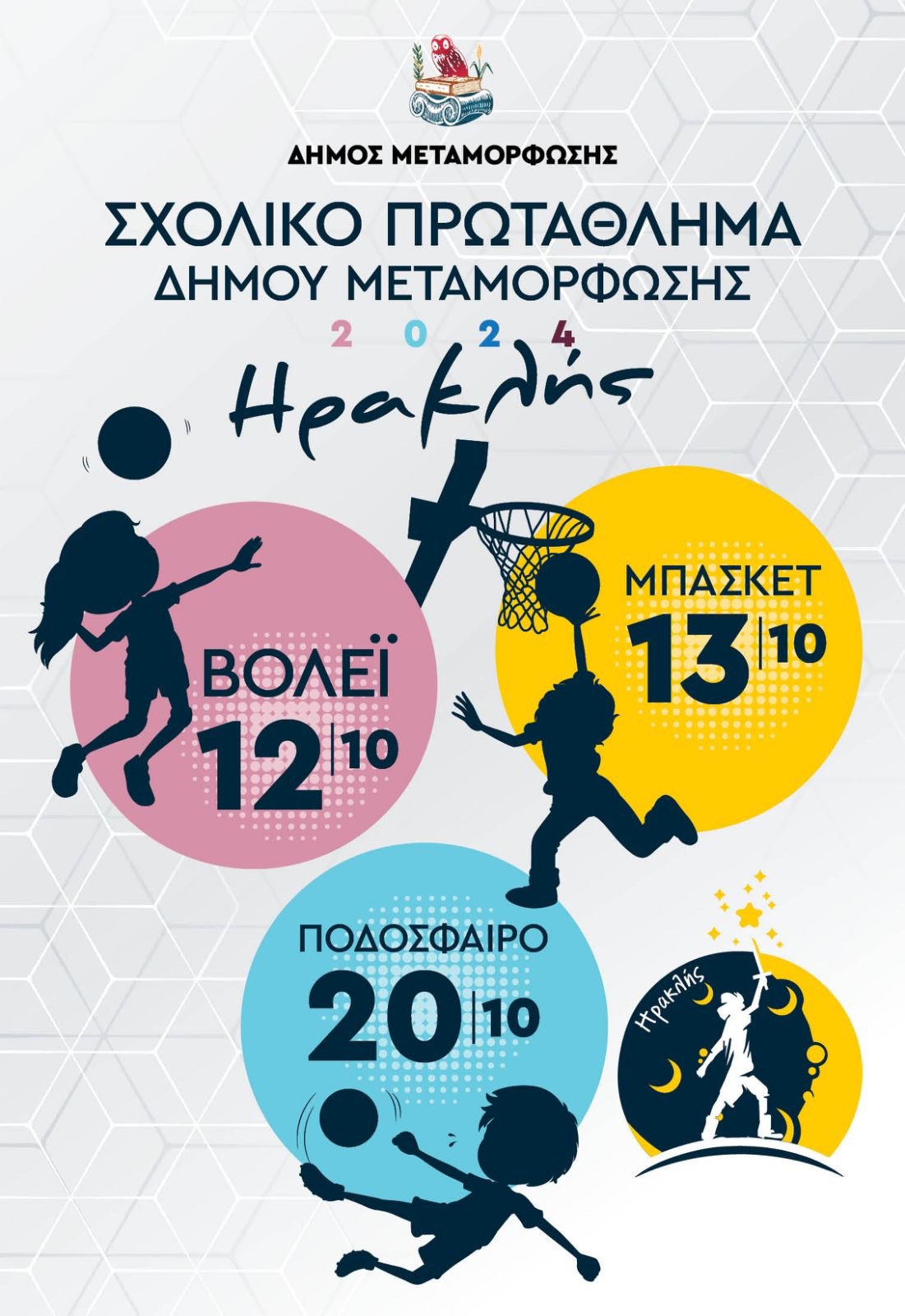 Αρχίζει το Σάββατο 12 Οκτωβρίου το Σχολικό Πρωτάθλημα «Ηρακλής» του Δήμου Μεταμόρφωσης.