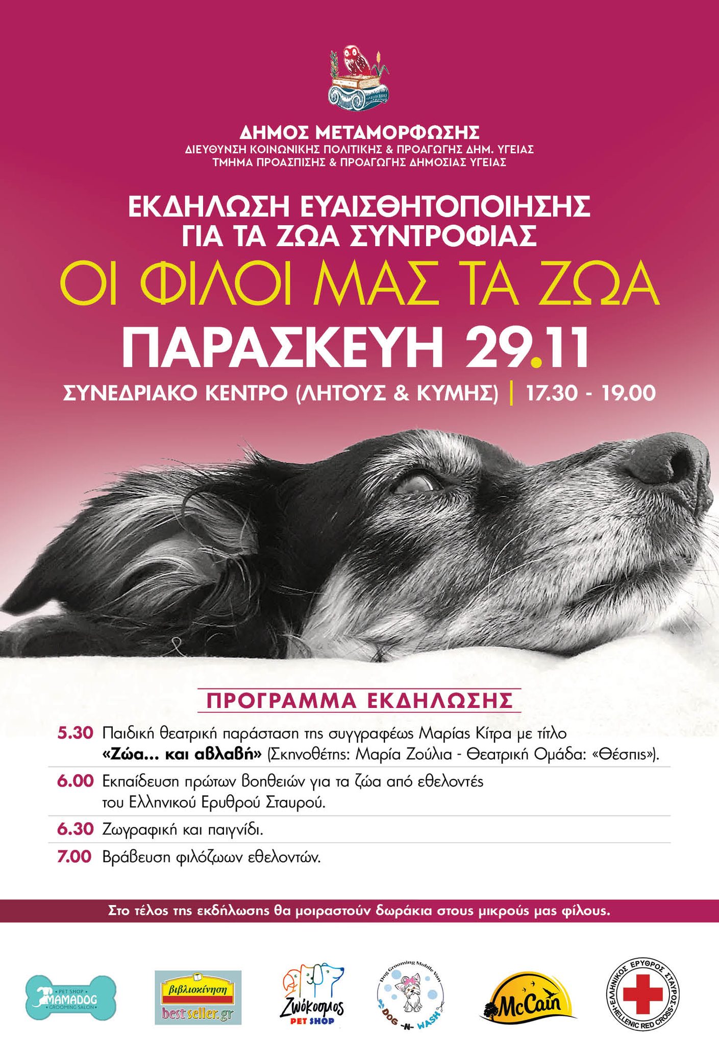 Δράση ευαισθητοποίησης για τα ζώα συντροφιάς (Συνεδριακό 29/11, 17:30)