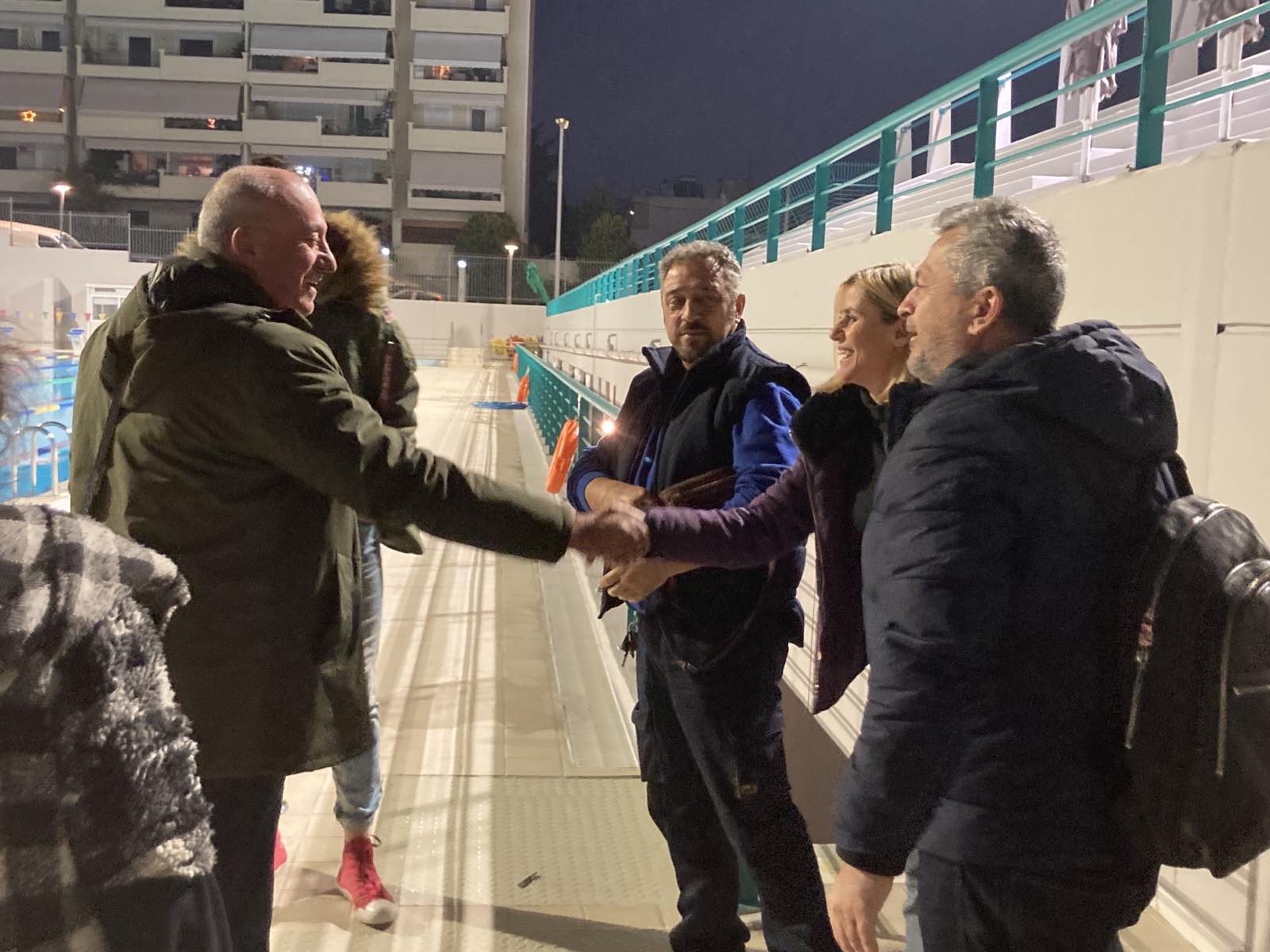 Εκεί ξεναγήθηκε στις εγκαταστάσεις από την αρμόδια αντιδήμαρχο Αθλητισμού, Χριστίνα Αντωνοπούλου, ενώ είχε την ευκαιρία να συνομιλήσει με τον Προϊστάμενο του Τμήματος Αθλητισμού και εργαζομένους στο Κολυμβητήριο, με μέλη των αθλητικών συλλόγων και με αθλητές.