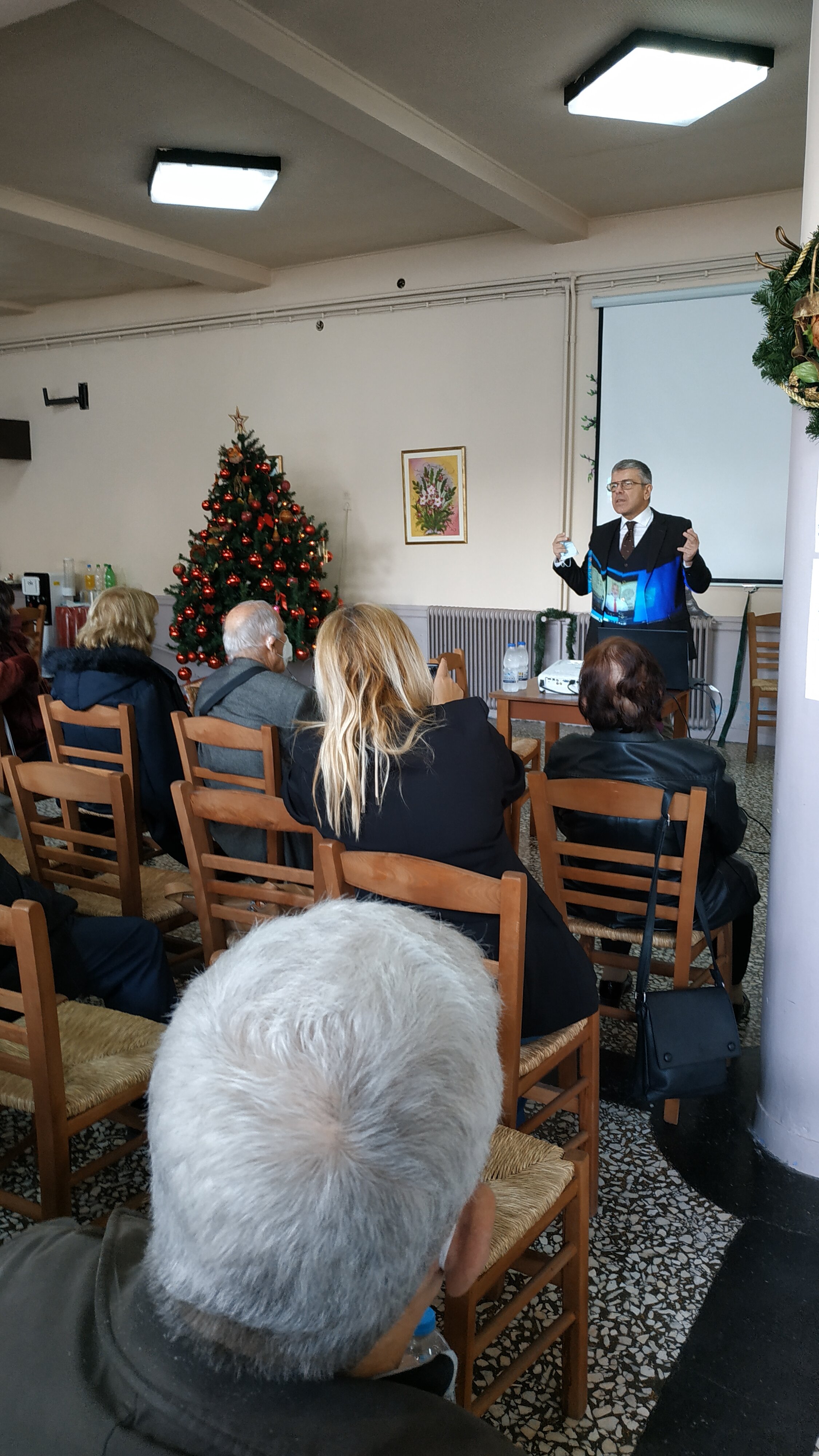 Ομιλητής ήταν ο κ. Στυλιανός Φρέγκογλου, ιατρός πνευμονολόγος, ο οποίος με απλό και κατανοητό τρόπο ενημέρωσε για τις δυνατότητες πρόληψης του καρκίνου του πνεύμονα.