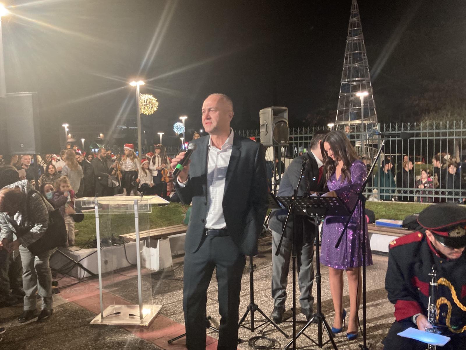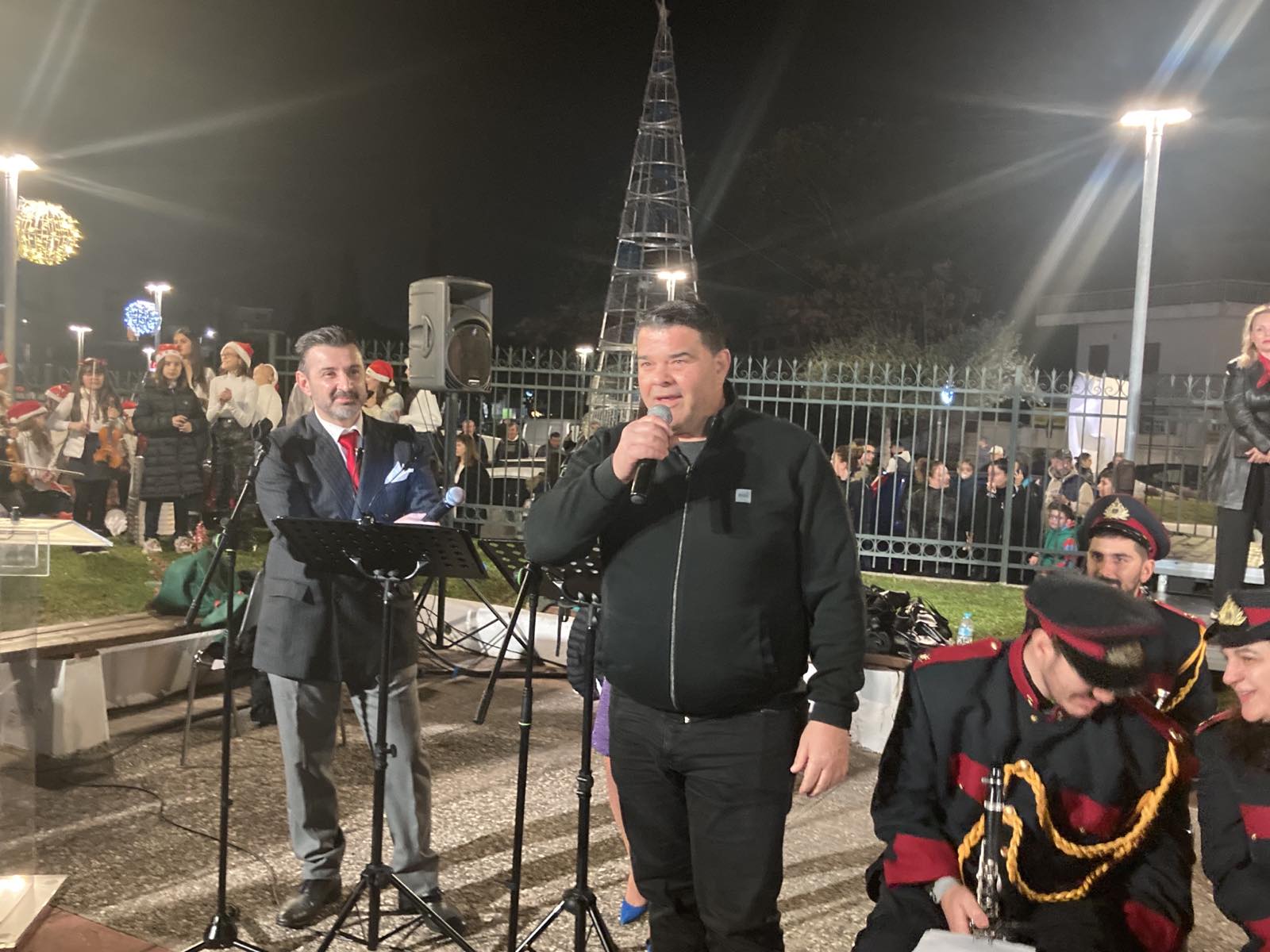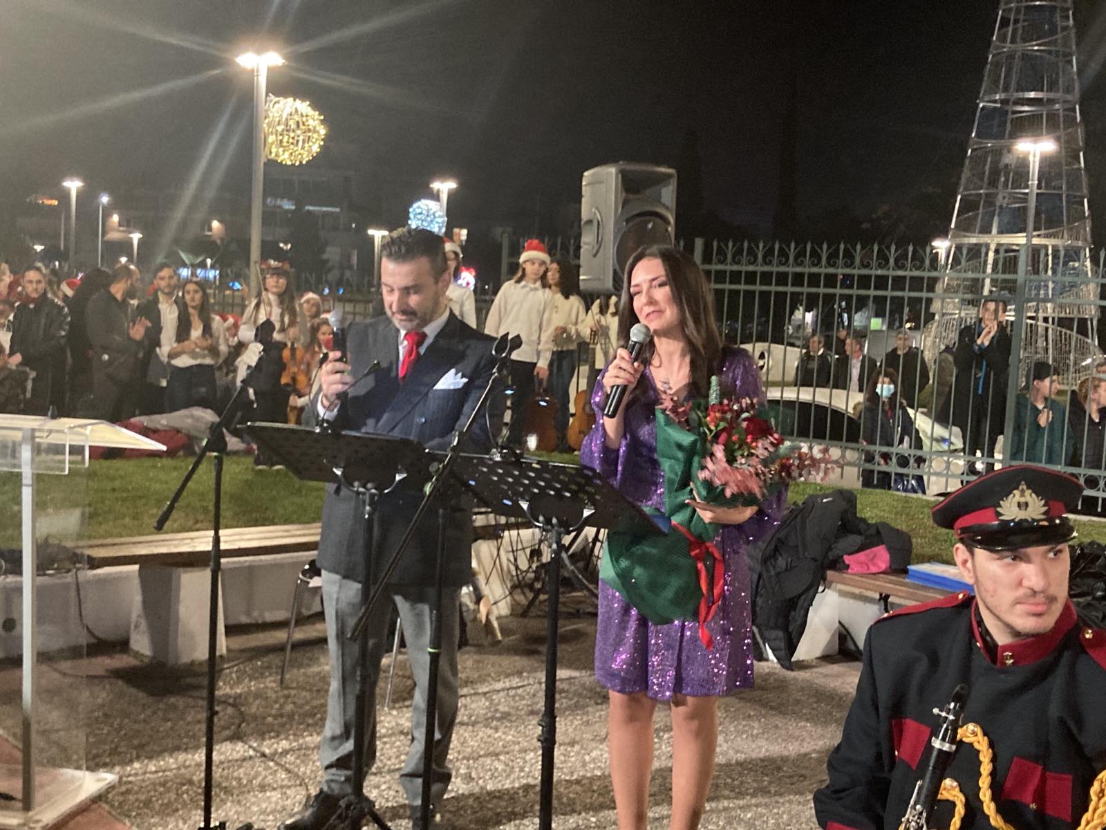 Καλωσορίζοντας όσους γέμισαν τον χώρο, ο Στράτος Σαραούδας απηύθυνε χαιρετισμό και ευχήθηκε Υγεία και Αγάπη σε όλο τον κόσμο, ενώ ευχαρίστησε και τα στελέχη και τους υπαλλήλους του Δήμου για τον στολισμό της πόλης και τη διοργάνωση των Χριστουγεννιάτικων εκδηλώσεων. Την εκδήλωση παρουσίασαν ο υπεύθυνος του καλλιτεχνικού προγραμματισμού του Δήμου Μεταμόρφωσης, Δημοσθένης Σταυριανός και η δημοσιογράφος του MEGA, Ελευθερία Νταβατζή.