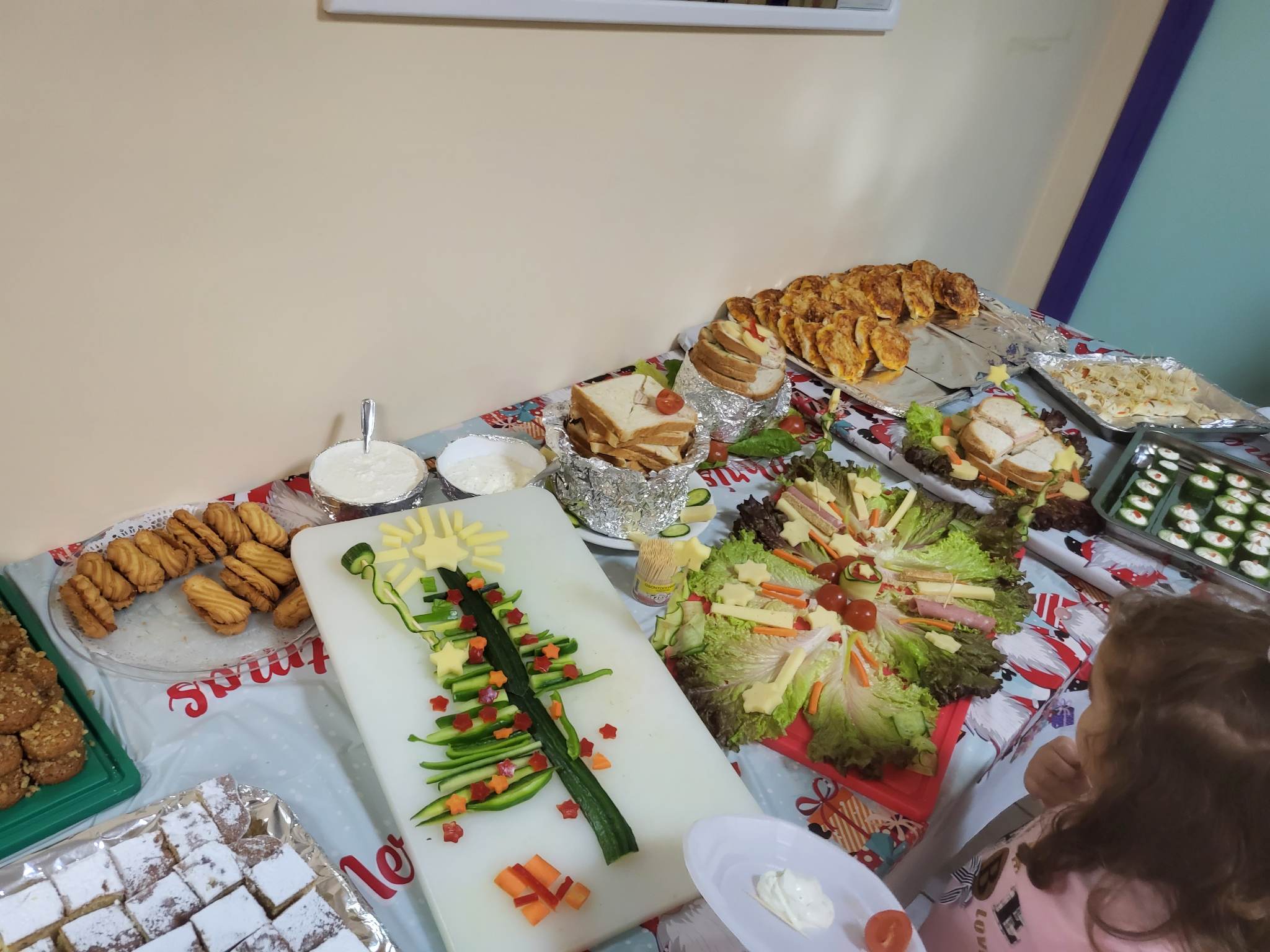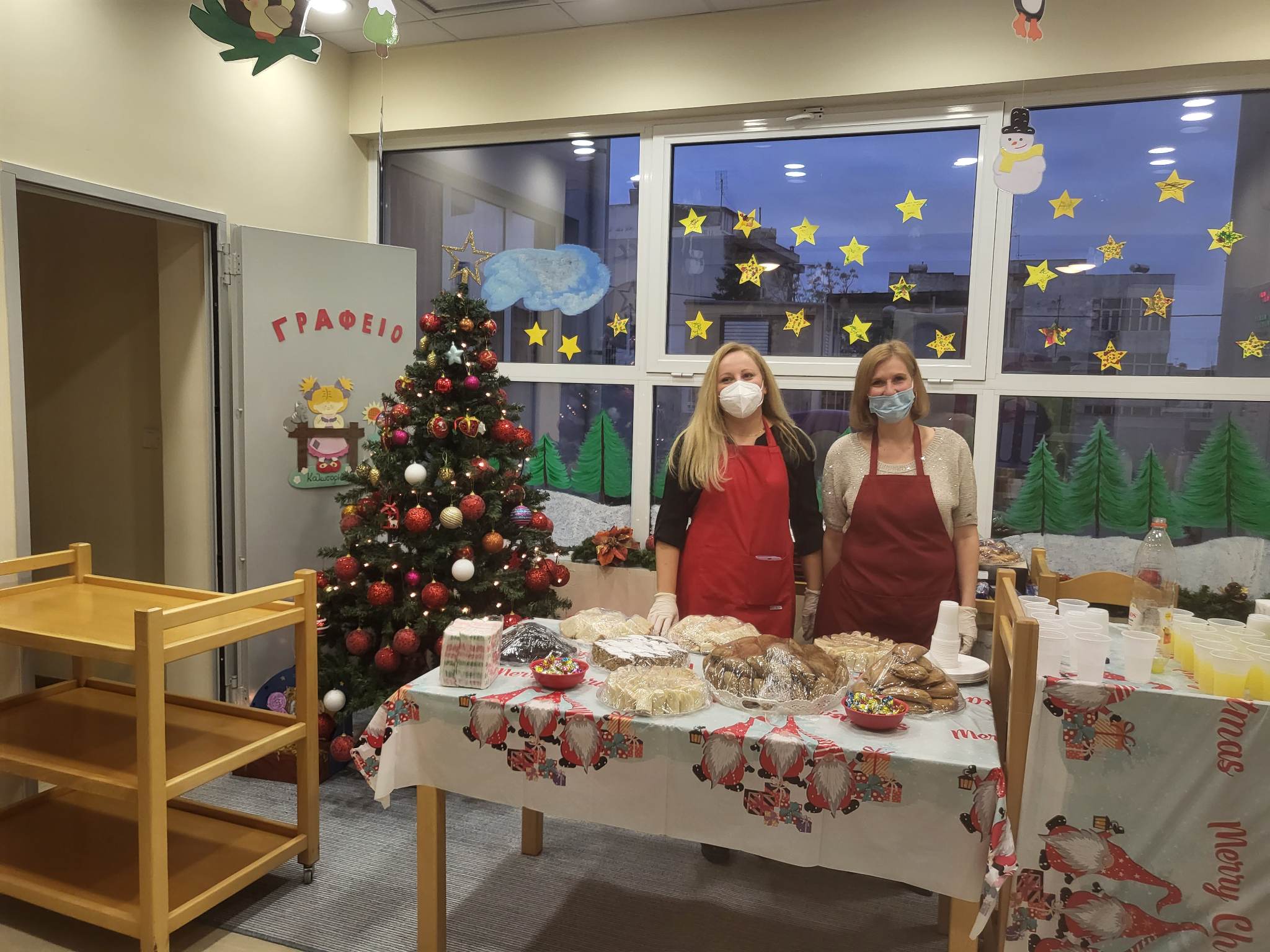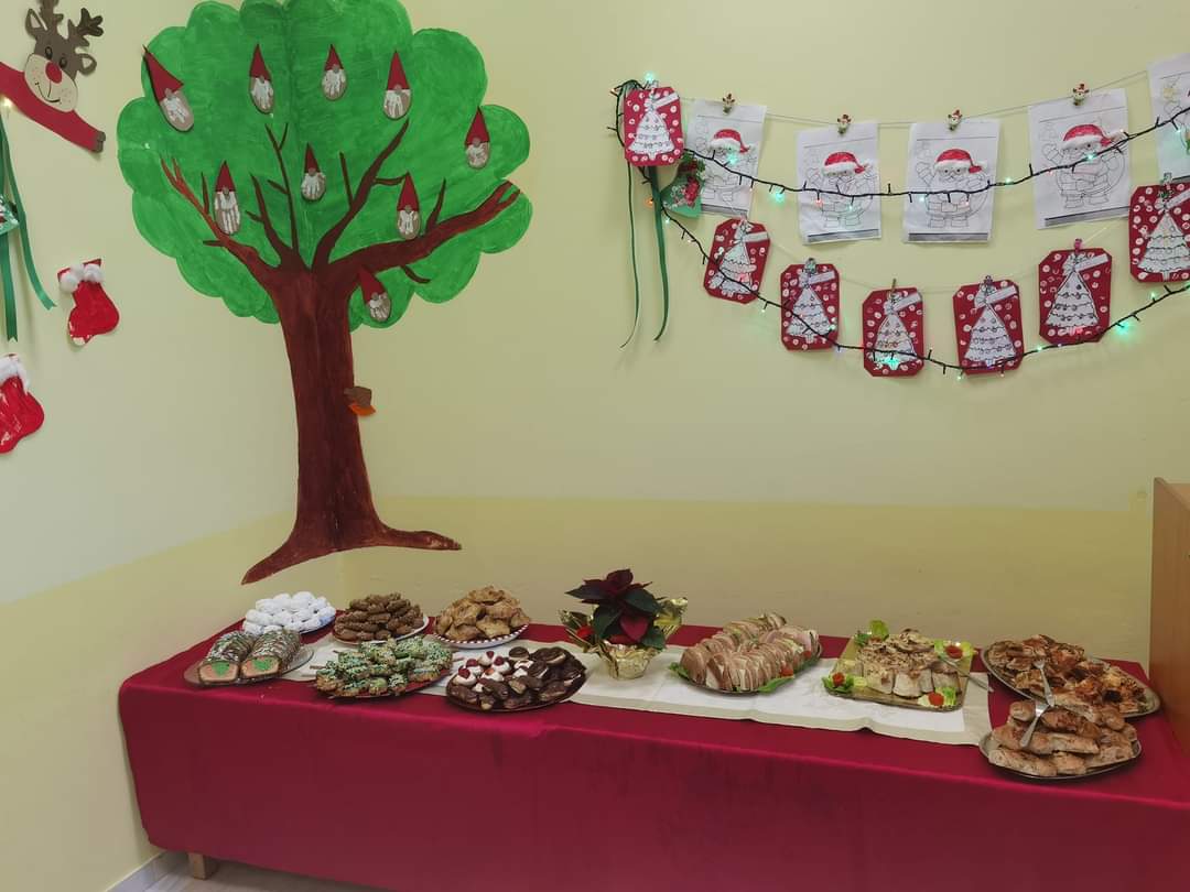 Τα παιδιά μαζί με τους γονείς τους παρουσίασαν μουσικοθεατρικό δρώμενο για τη Γέννηση του Χριστού, τραγούδησαν τα Χριστουγεννιάτικα Κάλαντα, έφτιαξαν Γιορτινές κατασκευές, έγραψαν γράμμα στον Άγιο Βασίλη και στη συνέχεια έγιναν μικροί ζαχαροπλάστες και έφτιαξαν με τους μάγειρές μας τα πιο γευστικά γλυκά, πασπαλισμένα με αμέτρητα χαμόγελα!