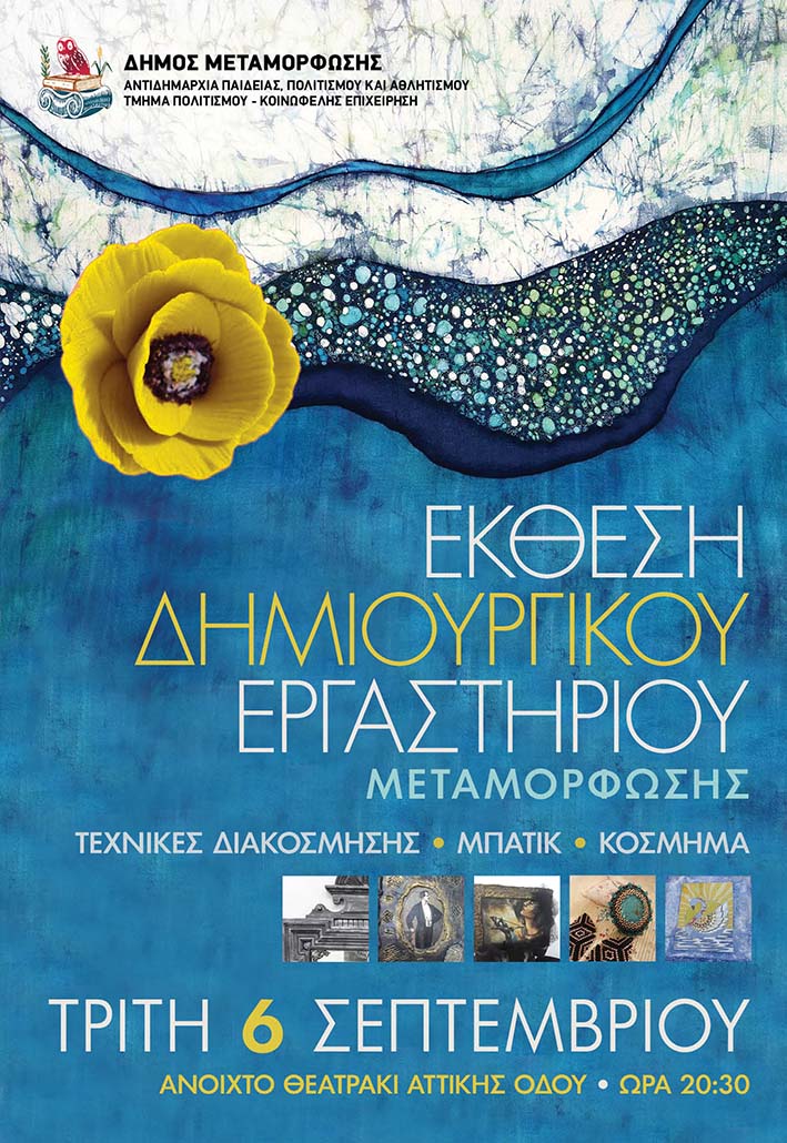 Στον περιβάλλοντα χώρο θα λειτουργεί έκθεση με τα έργα των μαθητών του Δημιουργικού Εργαστηρίου Μεταμόρφωσης.