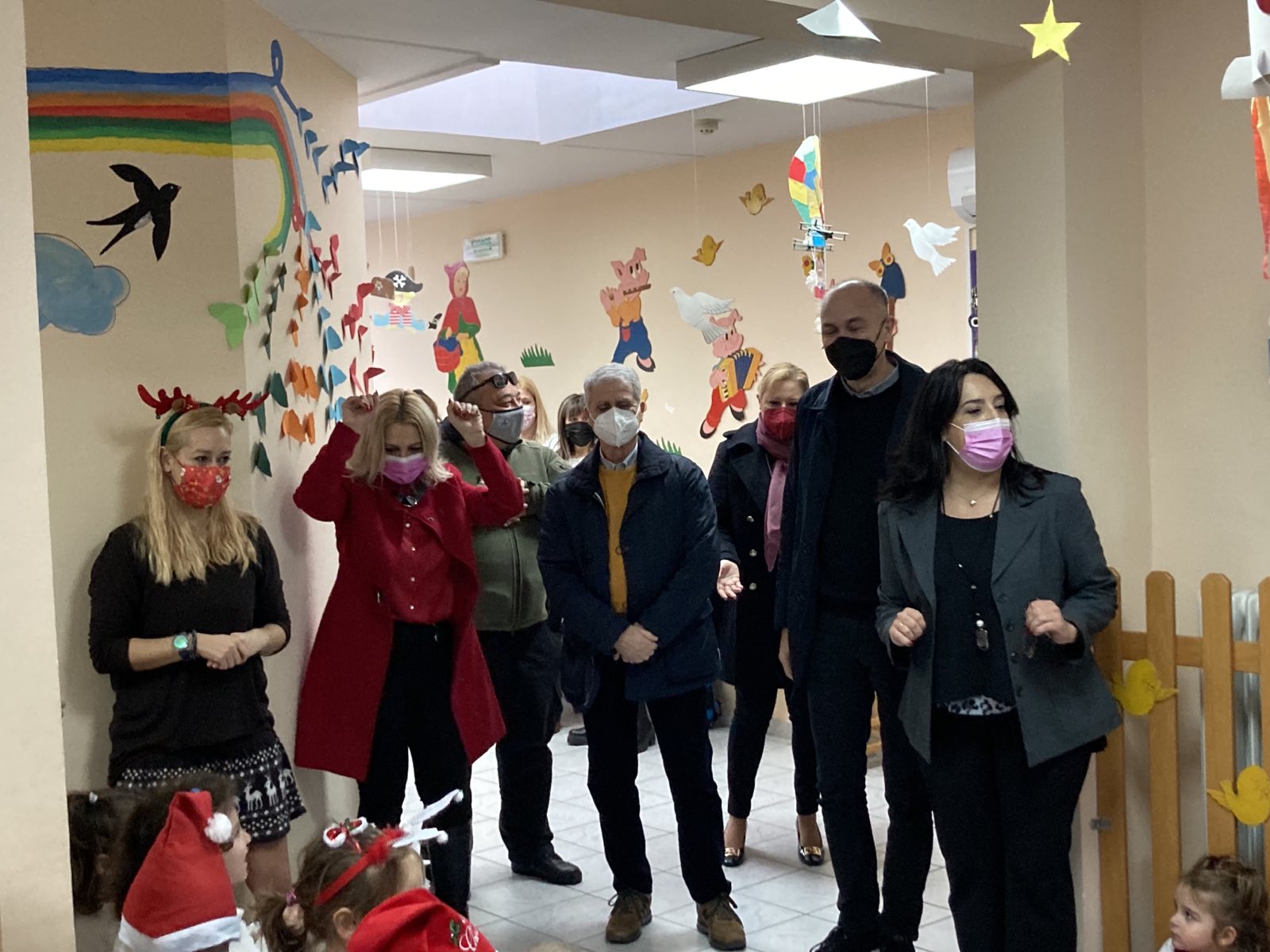 Τα κάλαντα και χριστουγεννιάτικα τραγούδια είπαν σήμερα στον Δήμαρχο Μεταμόρφωσης, Στράτο Σαραούδα και στον αρμόδιο Αντιδήμαρχο Κοινωνικής Πολιτικής, Πάνο Λουσίδη, παιδάκια από τους παιδικούς σταθμούς της Μεταμόρφωσης.