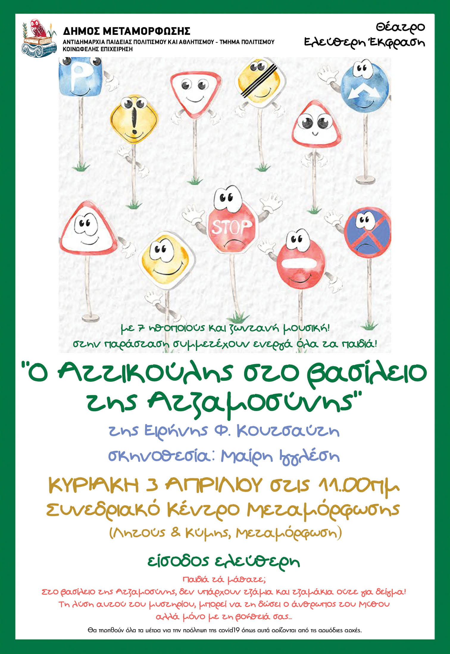 Ο Αττικούλης στο Βασίλειο της Ατζαμοσύνης’’ που δημιουργήθηκε από την Ειρήνη Φ. Κουτσαύτη και αφορά την εκπαίδευση των παιδιών σε θέματα οδικής ασφάλειας,παρουσιάζεται σε σκηνοθεσία Μαίρης Ιγγλέση από το Θέατρο Ελεύθερη Έκφραση, μετρώντας ήδη 15 χρόνια συνεχούς επιτυχημένης θεατρικής πορείας. Η βιωματική εμπειρία για παιδιά Νηπιαγωγείου και Δημοτικού, η θεατρική παράσταση που έχουν δει περισσότεροι από 62.000 μαθητές, ανανεώθηκε για 6η φορά, είναι πιο επίκαιρη από ποτέ και θα είναι κοντά μας, για τους μικρούς μας φίλους.