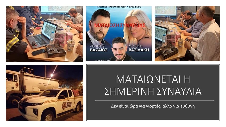 "H σημερινή ημέρα είναι ημέρα αγώνα και ευθύνης. Δεν είναι δυνατόν η φωτιά να μαίνεται δίπλα μας ανεξέλεγκτη, άνθρωποι να χάνουν τα σπίτια και τη ζωή τους και εμείς να γιορτάζουμε με συναυλίες.