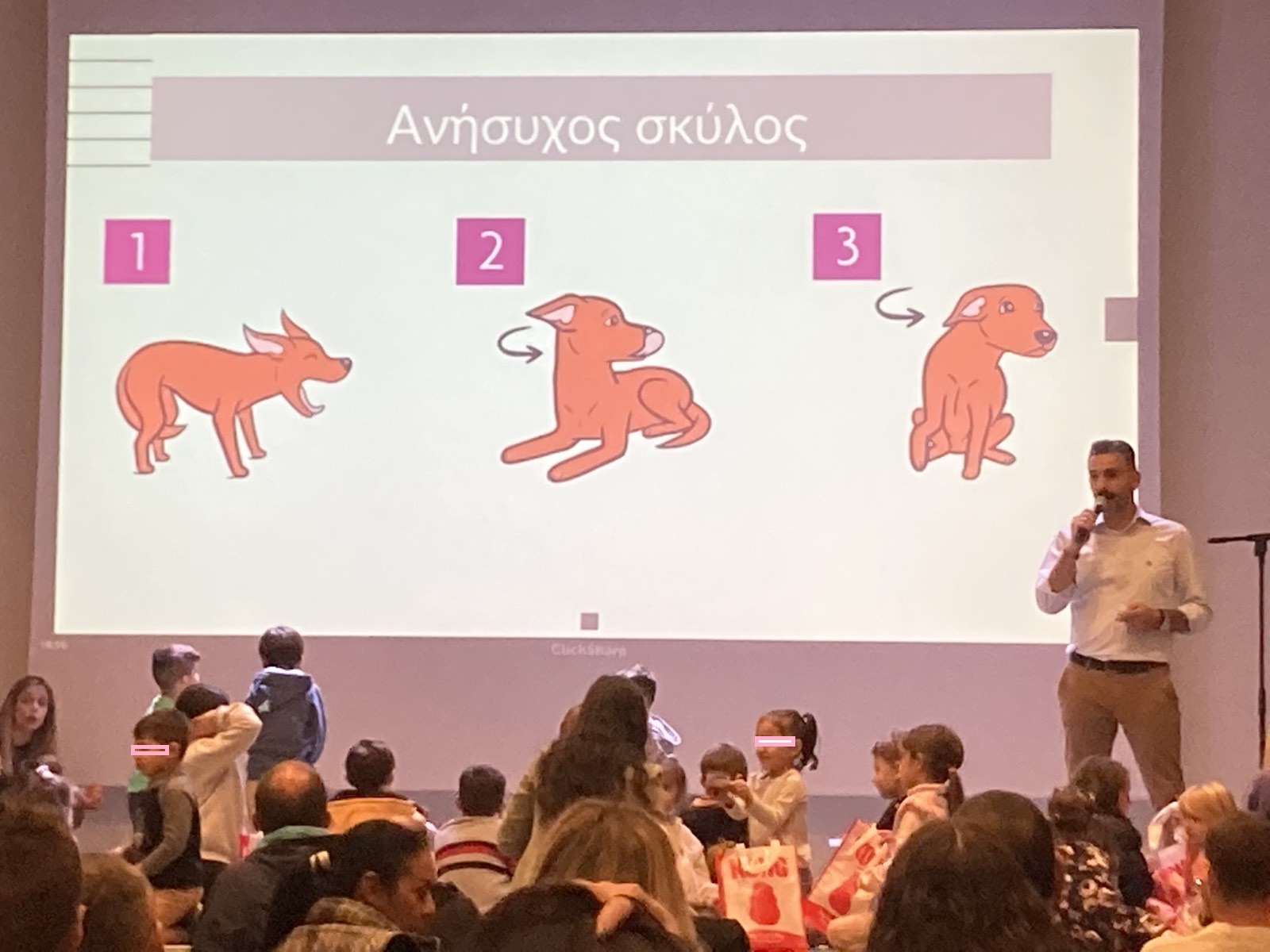 Στη συνέχεια ακολούθησε ενημερωτική παρουσίαση, κατά την οποία μικροί και μεγάλοι διδάχθηκαν συμπεριφορές και τρόπους διαχείρισης των ζώων.