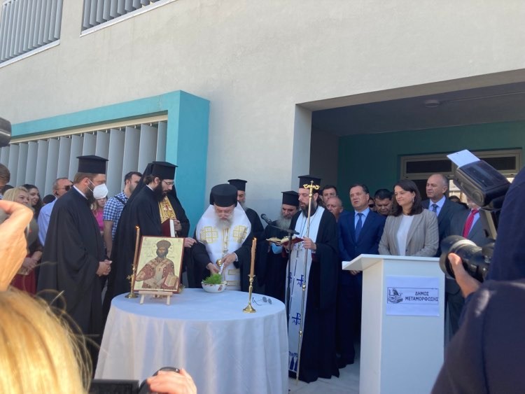 Τον αγιασμό τέλεσε ο Σεβασμιότατος Μητροπολίτης Κηφισίας, Αμαρουσίου, Ωρωπού και Μαραθώνος, κ.κ. Κύριλλος, ενώ ακολούθησαν σύντομοι χαιρετισμοί του Δημάρχου Μεταμόρφωσης και των επικεφαλής των φορέων που εμπλέκονται στο έργο, ήτοι της Υπουργού Παιδείας, Νίκης Κεραμέως, του Υπουργού Αναπτυξης, Άδωνι Γεωργιάδη και του Περιφερειάρχη Αττικής, Γιώργου Πατούλη.