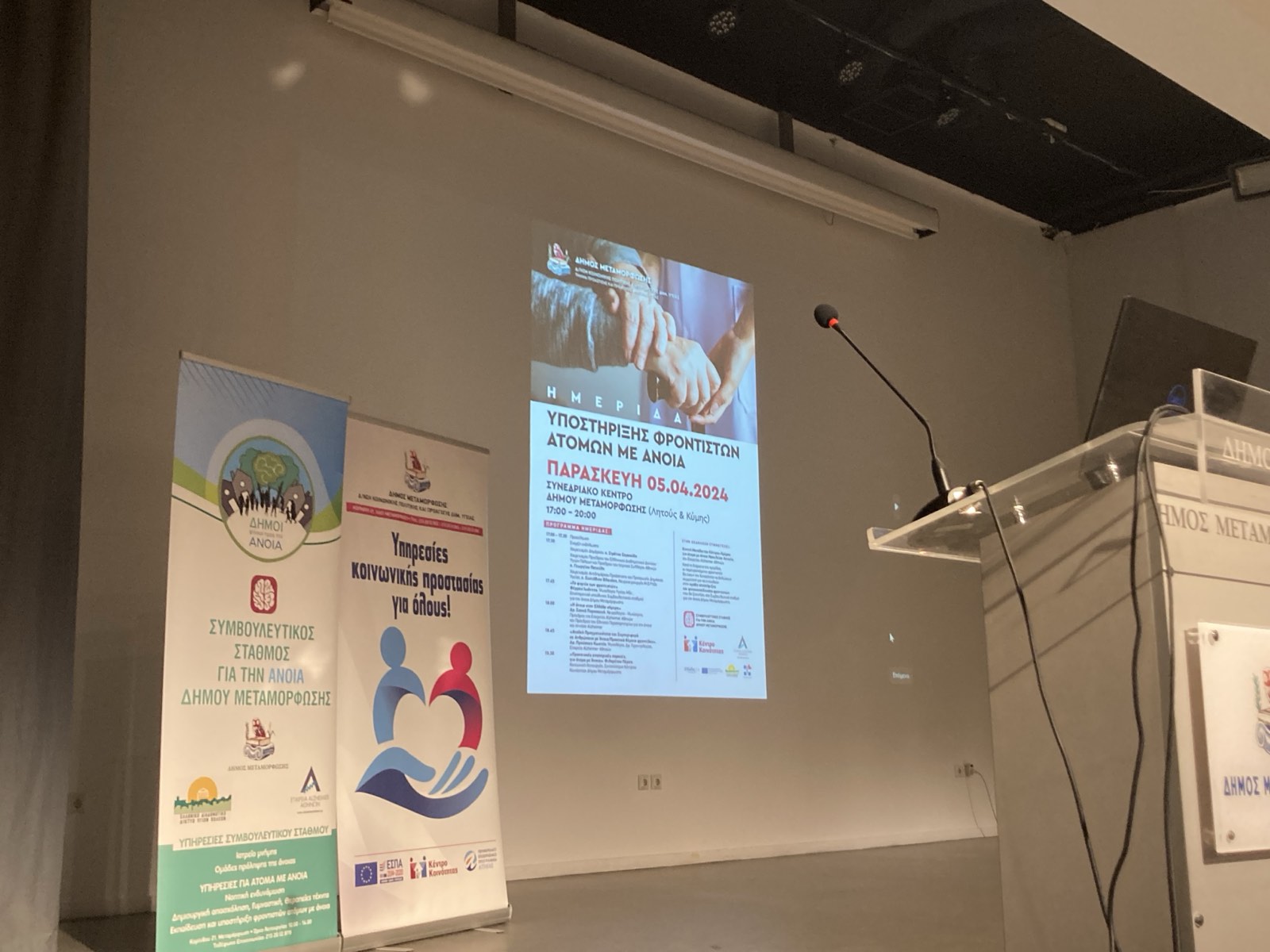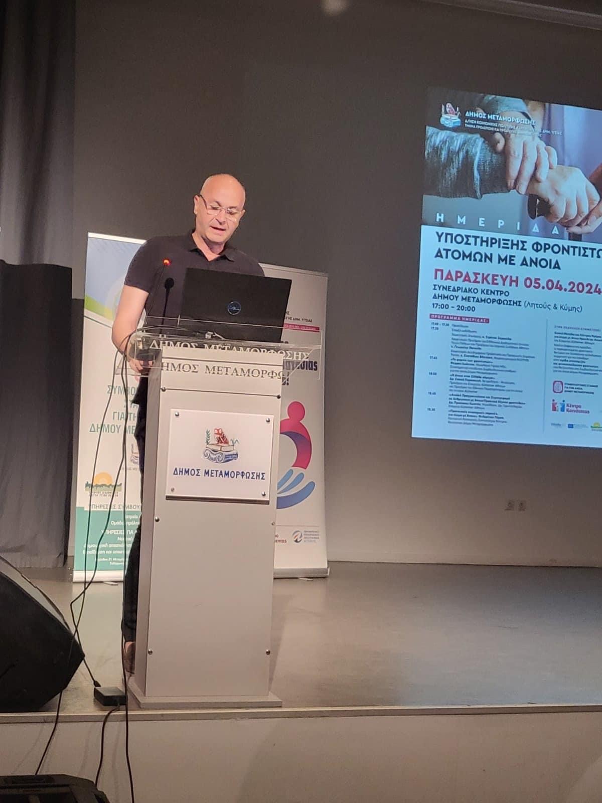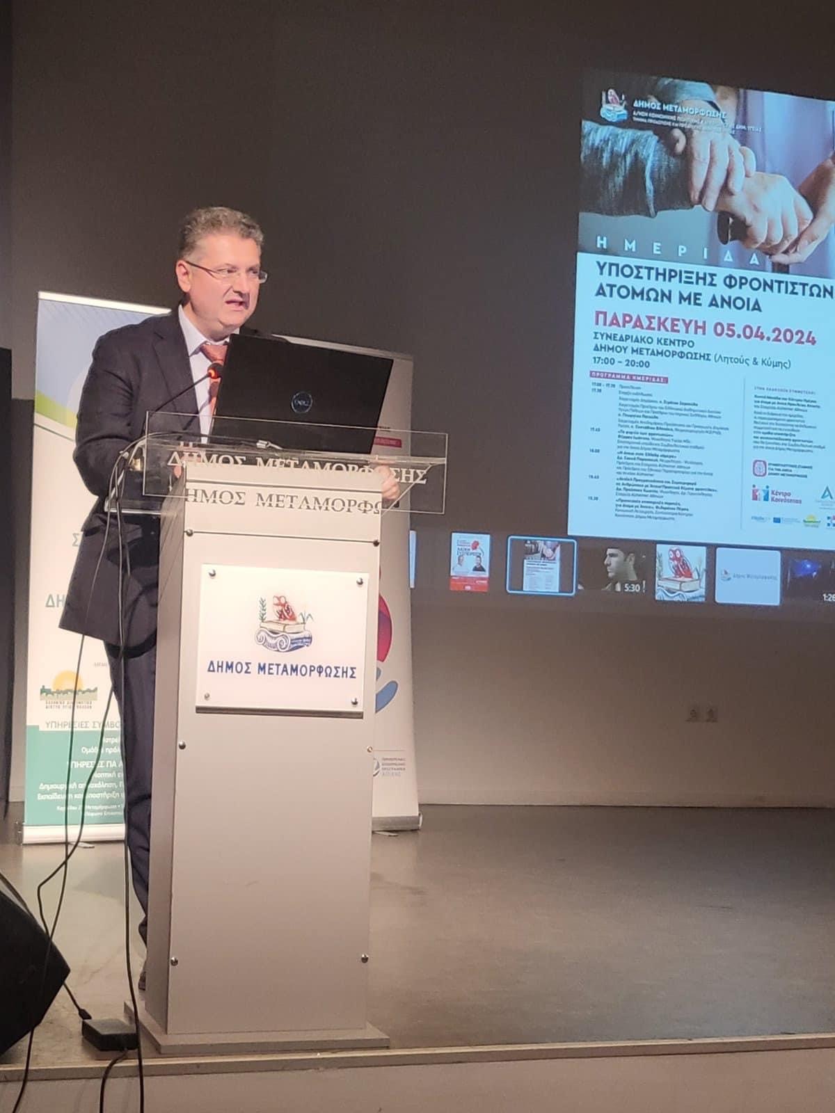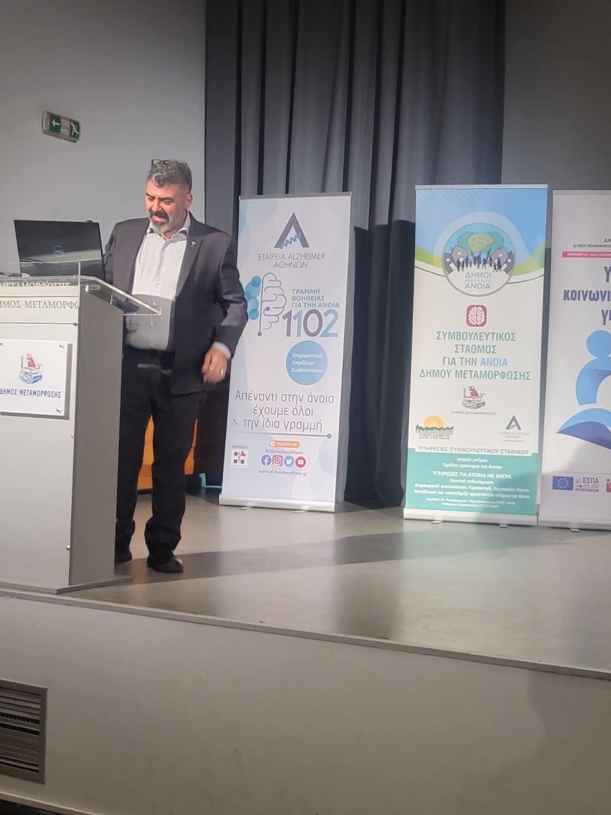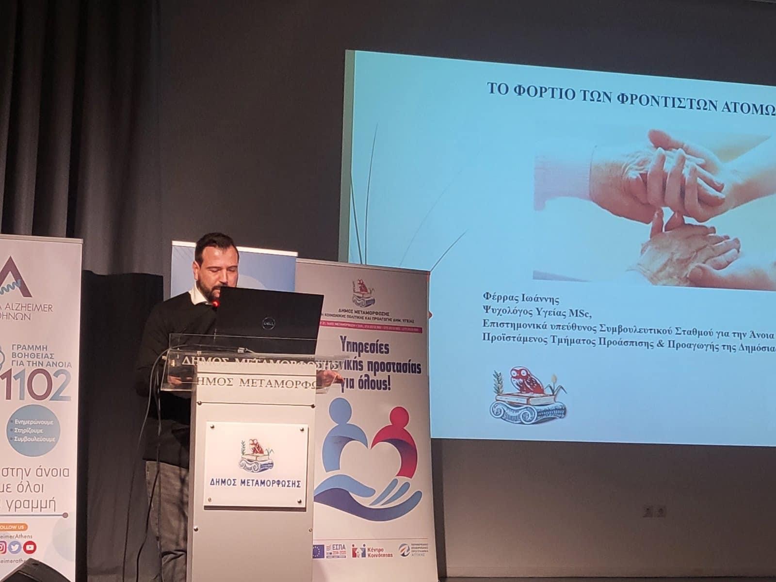 Με επιτυχία πραγματοποιήθηκε, στο Συνεδριακό Κέντρο του Δήμου Μεταμόρφωσης, η Ημερίδα για την Υποστήριξη των Φροντιστών Ατόμων με Άνοια από το Τμήμα Προάσπισης & Προαγωγής Δημόσιας Υγείας της Διεύθυνσης Κοινωνικής Πολιτικής & Προαγωγής Δημόσιας Υγείας και τον Συμβουλευτικό Σταθμό για την Άνοια του Δήμου σε συνεργασία με την Εταιρεία Altzheimer Αθηνών και το Κέντρο Κοινότητας.