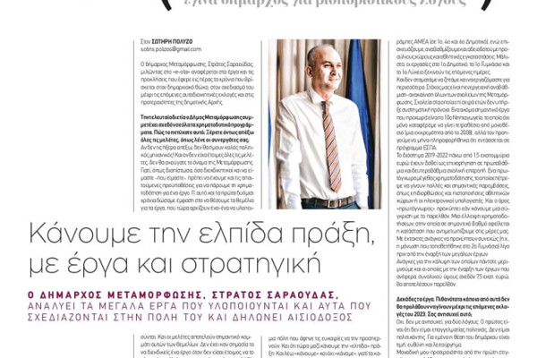 Συνέντευξη του Δημάρχου Μεταμόρφωσης, Στράτου Σαραούδα, στην εφημερίδα Παραπολιτικά (4-6-2022).