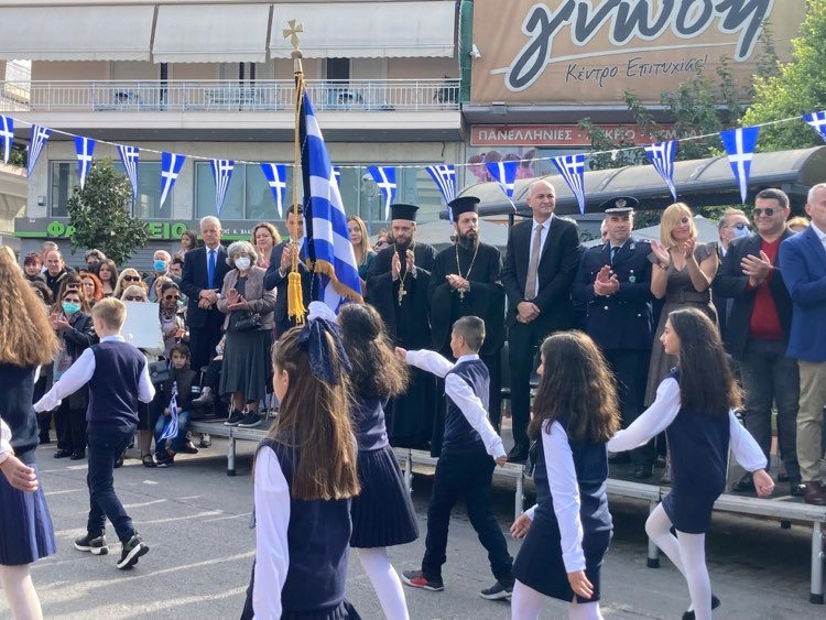Με κάθε επισημότητα και λαμπρότητα, καθώς και με τη μαζική συμμετοχή πολιτών και φορέων, πραγματοποιήθηκαν και φέτος οι εορταστικές εκδηλώσεις του Δήμου Μεταμόρφωσης για την εθνική επέτειο της 28ης Οκτωβρίου 1940, οι οποίες κορυφώθηκαν με τη μαθητική παρέλαση, που πραγματοποιήθηκε επί της οδού Γεωργίου Παπανδρέου.
