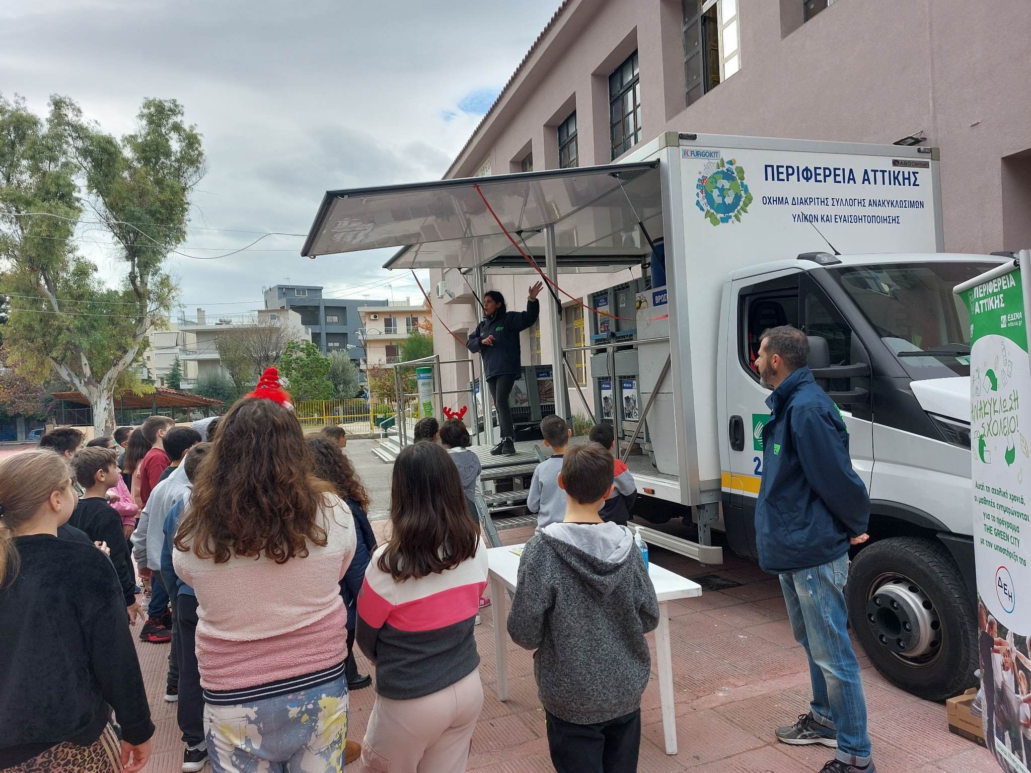 Κατά τη διάρκειά της, οι μαθητές είχαν την ευκαιρία να ενημερωθούν για την περιβαντολλογική κρίση και για την αξία της ανακύκλωσης, ενώ το κινητό πράσινο σημείο, την επόμενη Τρίτη 19 Δεκεμβρίου, θα βρεθεί στο 2ο Δημοτικό Σχολείο Μεταμόρφωσης.