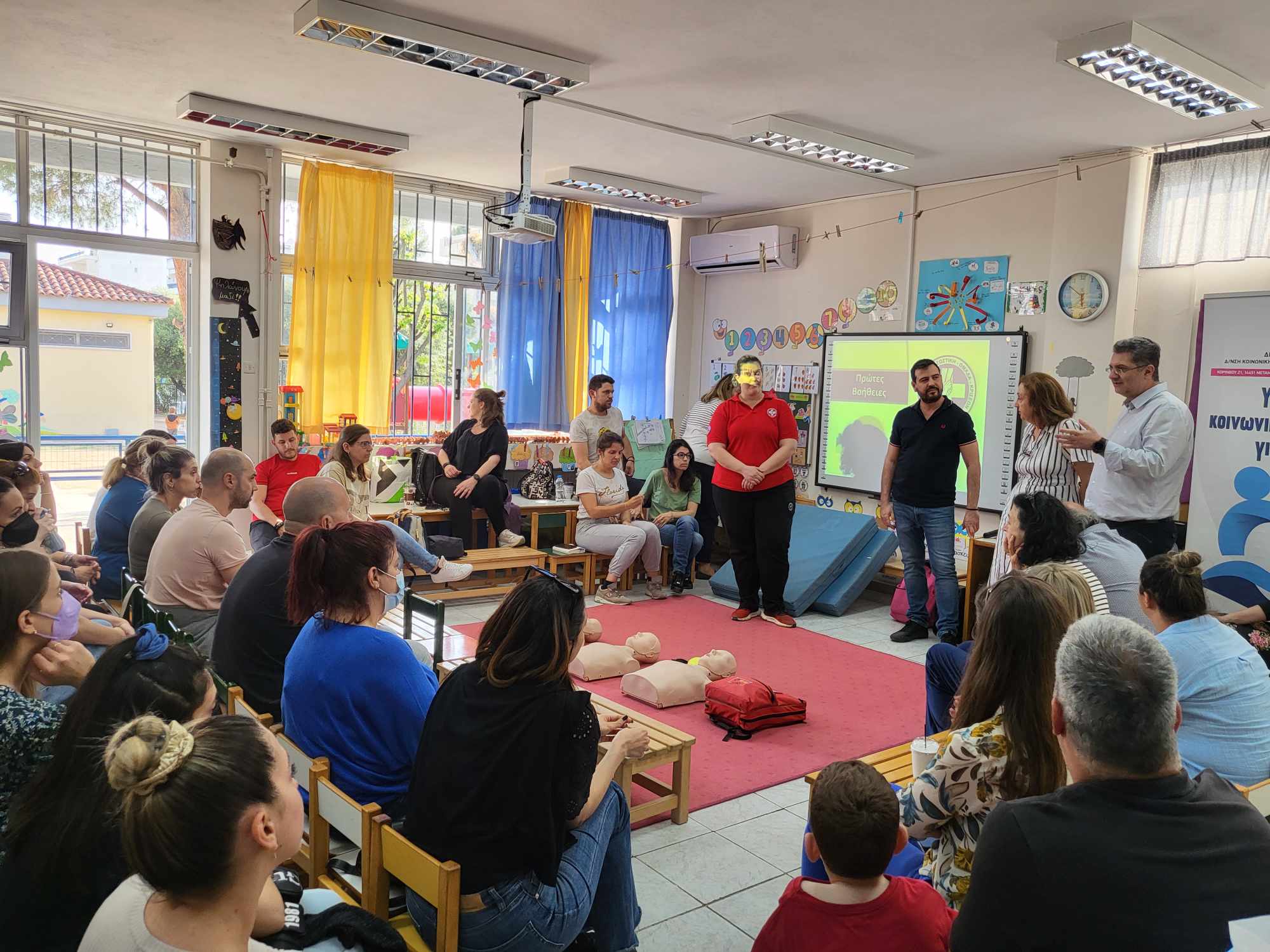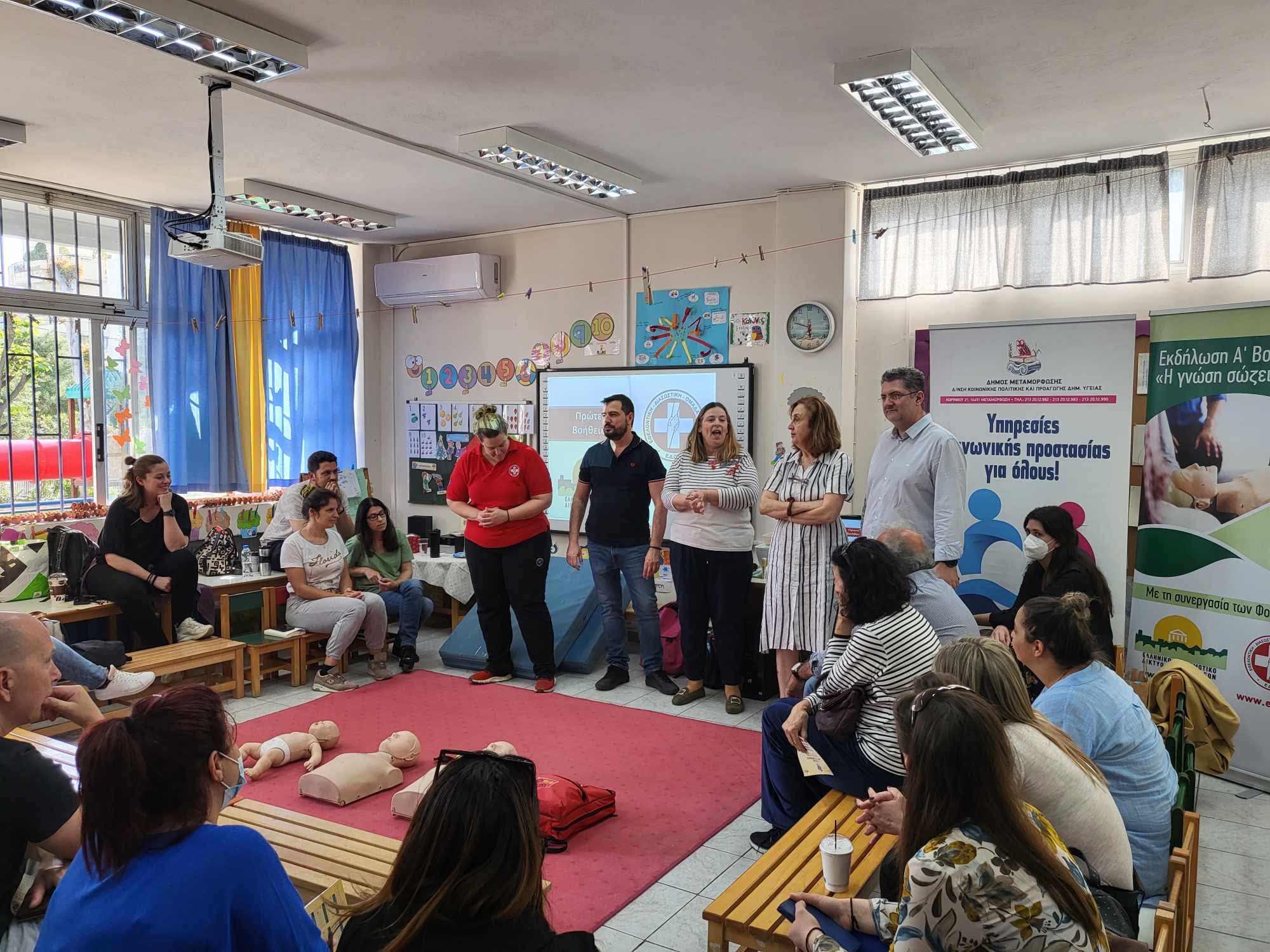 Το Τμήμα Προάσπισης & Προαγωγής Δημόσιας Υγείας της Διεύθυνσης Κοινωνικής Πολιτικής & Προαγωγής Δημόσιας Υγείας του Δήμου Μεταμόρφωσης σε συνεργασία με το 7ο και 8ο Νηπιαγωγείο Μεταμόρφωσης, το Ελληνικό Διαδημοτικό Δίκτυο Υγιών Πόλεων, και τους Διασώστες της Εθελοντικής Διασωστικής Ομάδας Κρίσεων ΕΔΟΚ, διοργάνωσε την Τετάρτη 17 Απριλίου 2024 στο 7ο Νηπιαγωγείο Μεταμόρφωσης το εξαιρετικά χρήσιμο σεμινάριο Α' Βοηθειών «Η γνώση σώζει ζωές».