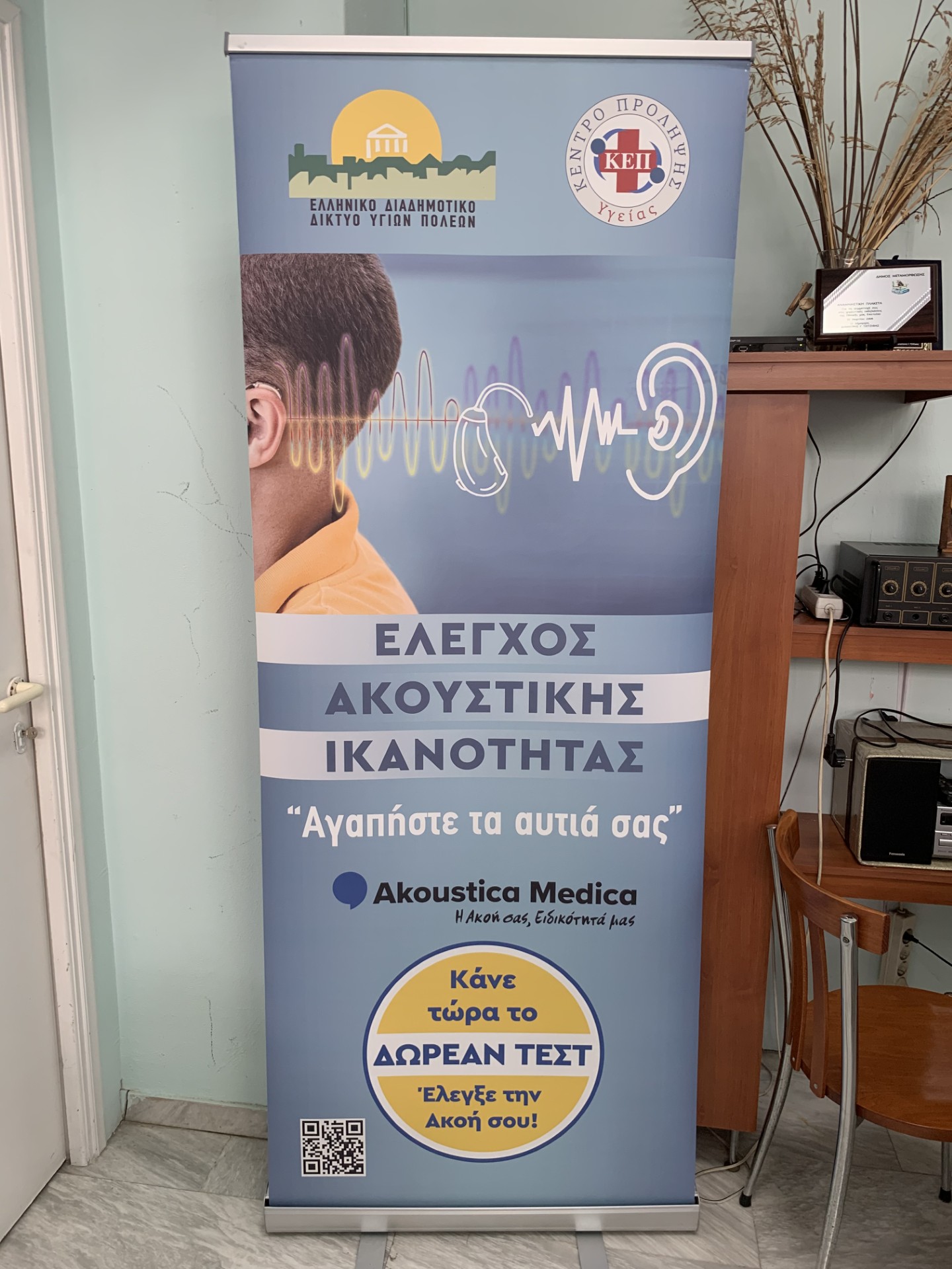 Στις 05/06/2024, πραγματοποιήθηκε, σε συνεργασία με το Ελληνικό Διαδημοτικό Δίκτυο Υγιών Πόλεων (ΕΔΔΥΠΠΥ), τον Δήμο Μεταμόρφωσης και την Εταιρεία AKOUSTIKA MEDICA, δράση πρόληψης και πρώιμης διάγνωσης της ακουστικής ικανότητας με τίτλο «Αγαπήστε τα αυτιά σας». Η Δράση συμπεριλάμβανε ενημερωτική ομιλία και δωρεάν προληπτικό έλεγχο ακουστικής ικανότητας (ωτοσκόπηση) που πραγματοποιείται από συνεργαζόμενο ΩΡΛ Ιατρό.
