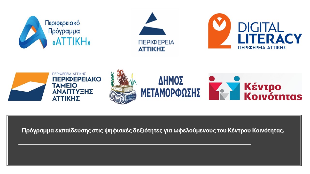 Πρόγραμμα εκπαίδευσης στις ψηφιακές δεξιότητες για ωφελούμενους του Κέντρου Κοινότητας του Δήμου Μεταμόρφωσης.