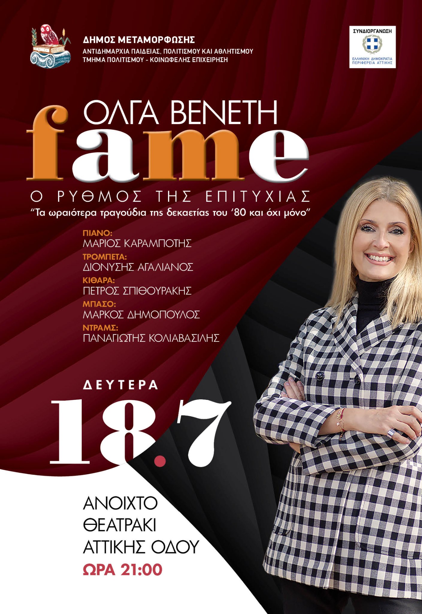 Δευτέρα 18/7 ''FAME'' με την Όλγα Βενέτη, μαγεία απ' τα 80ς και τραγούδια που όλοι λατρέψαμε!