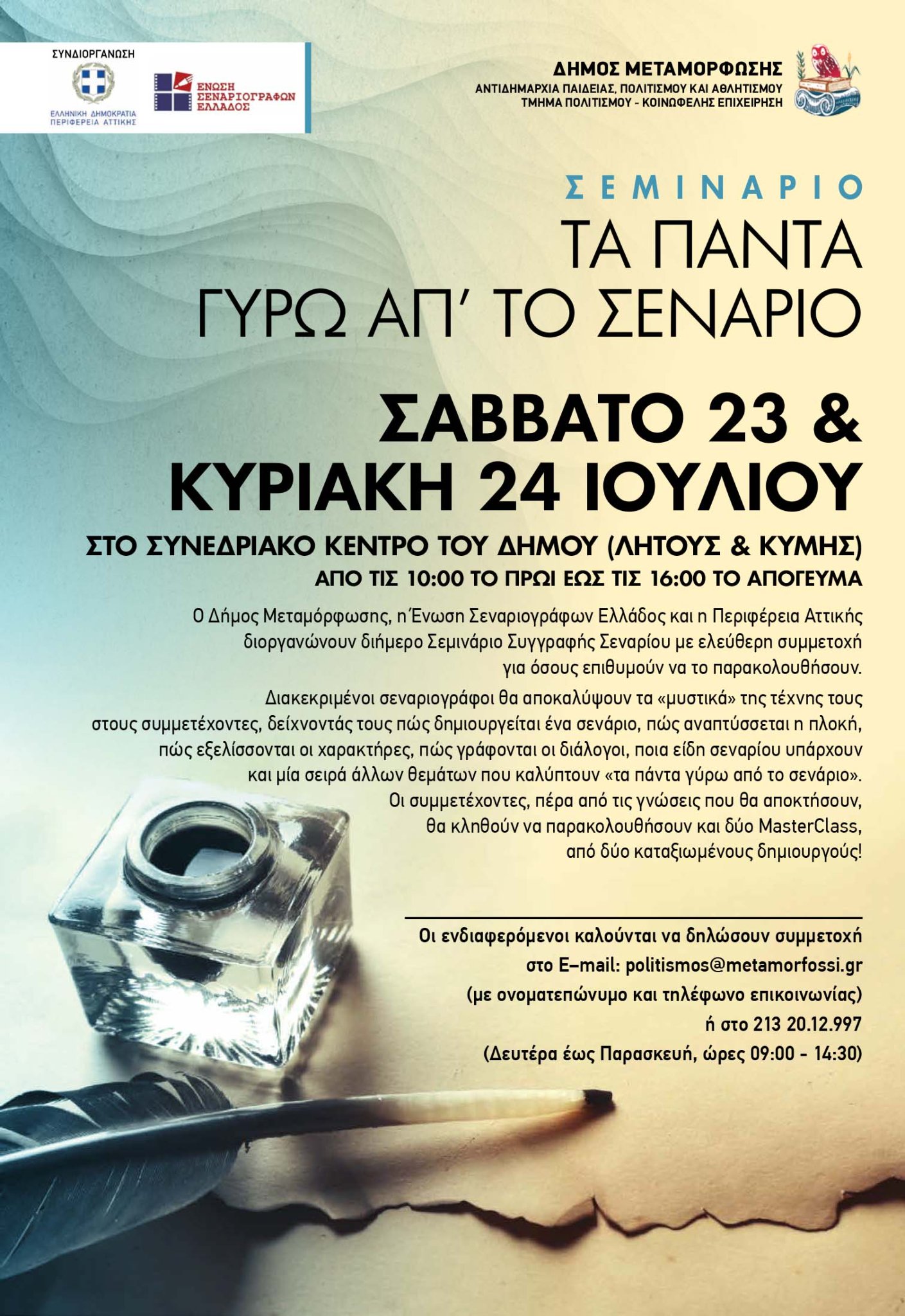 23 24/7 ένα εξαιρετικά ενδιαφέρον σεμινάριο συγγραφής σεναρίου σε συνεργασία με την Ένωση Σεναριογράφων Ελλάδος και την Περιφέρεια Αττικής.