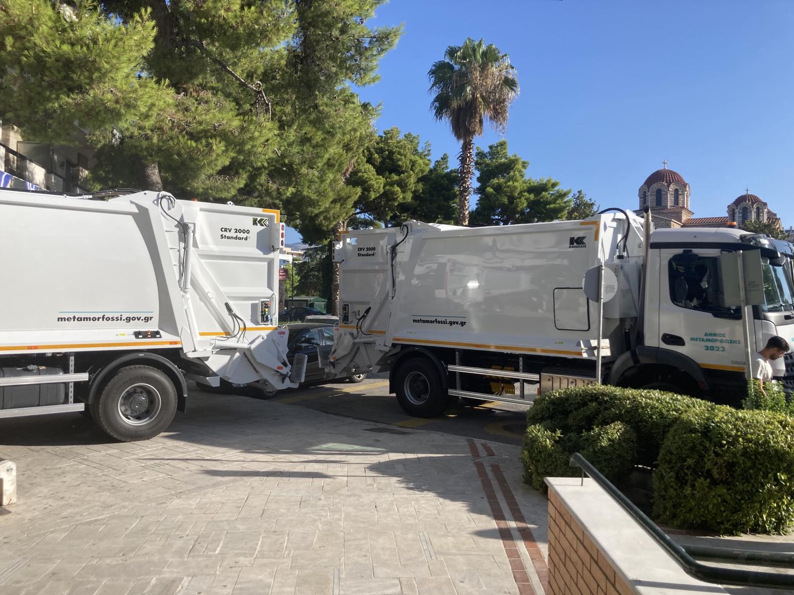 Σήμερα το πρωί δύο (2) ακόμη ολοκαίνουργια απορριμματοφόρα χωρητικότητας 16 m3, με σύστημα συμπίεσης τύπου πρέσας και ανυψωτικό μηχανισμό, παραδόθηκαν στην Διεύθυνση Καθαριότητας και Περιβάλλοντος του Δήμου Μεταμόρφωσης και μαζί με τα υπόλοιπα πέντε (5) απορριμματοφόρα ανανεώνουν ριζικά τον στόλο της υπηρεσίας.