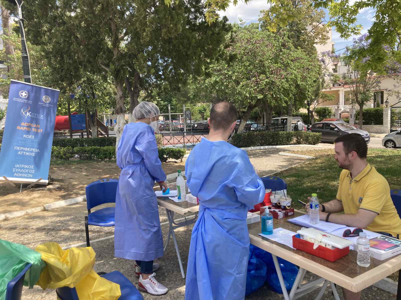 Με επιτυχία ολοκληρώθηκε την Τρίτη 31/5/2022 η δράση του Δήμου Μεταμόρφωσης ταχείας ανίχνευσης αντιγόνου Covid-19 (rapid tests), σε συνεργασία με την Περιφέρεια Αττικής και τον Ιατρικό Σύλλογο Αθηνών, στην Πλατεία του Ι.Ν. Μεταμορφώσεως του Σωτήρος, απέναντι από το Δημαρχείο.