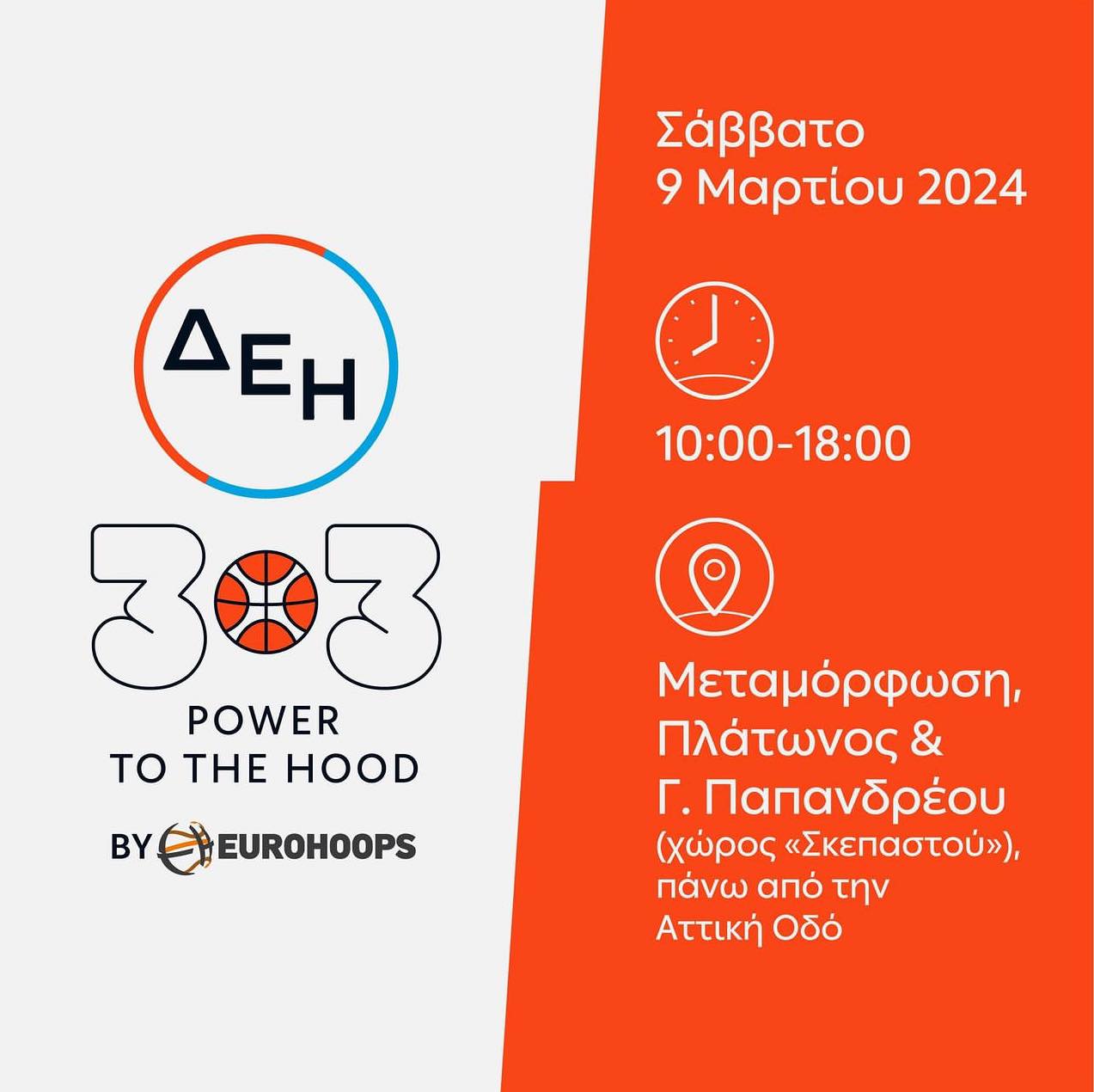 Tο Σάββατο 9 Μαρτίου 2024 η Μεταμόρφωση παίρνει πάσα από το Λαύριο και φιλοξενεί το ΔΕΗ 3×3 POWER TO THE HOOD by Eurohoops, τον 4ο σταθμό της επιτυχημένης διοργάνωσης.