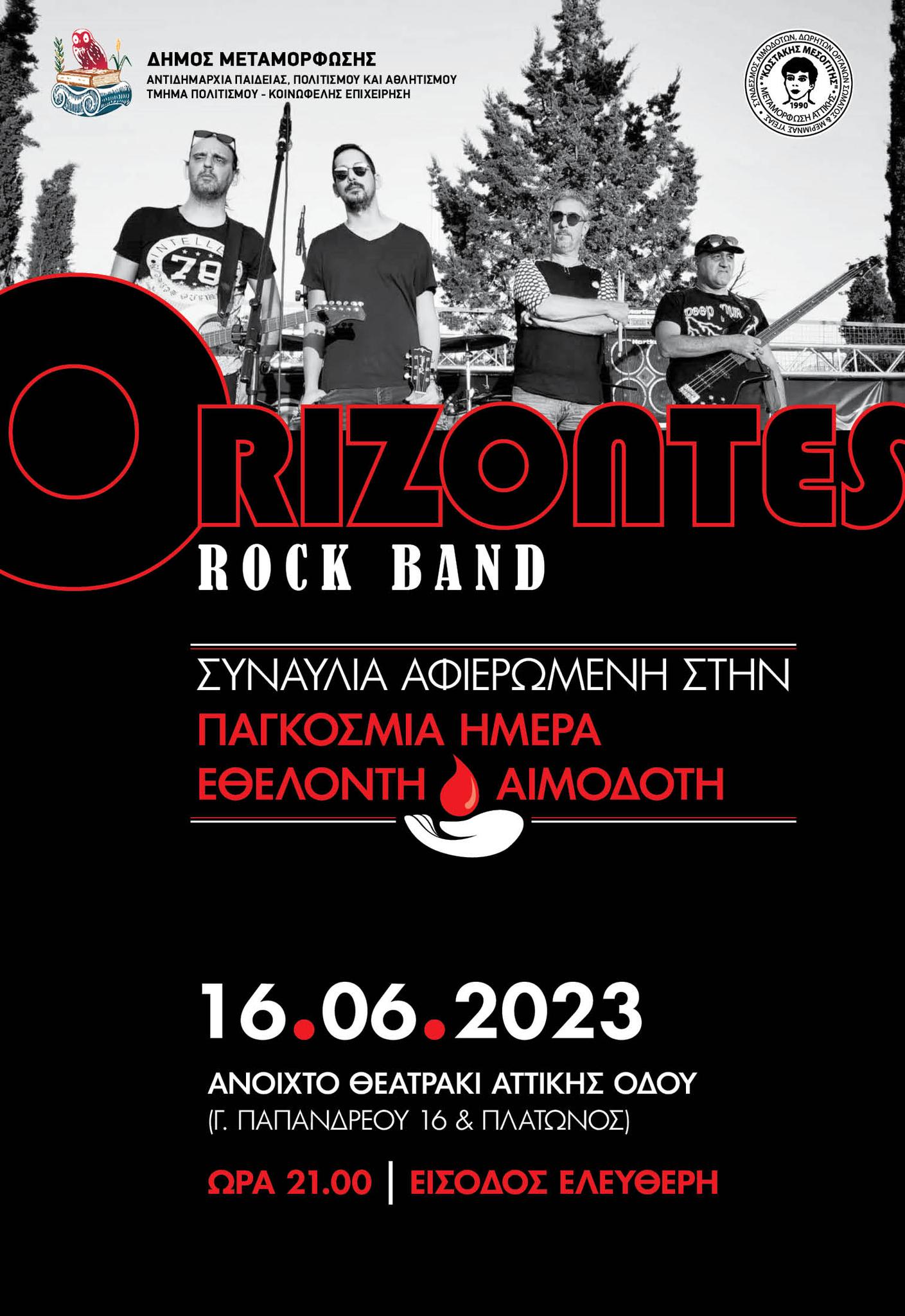 - 16/6 στο Θεατράκι Αττικής Οδού rock συναυλία με τους ''ΟΡΙΖΟΝΤΕΣ'' Rock Band αφιερωμένη στην Παγκόσμια Ημέρα Εθελοντή Αιμοδότη σε συνεργασία με τους αγαπητούς φίλους του ΣΑΙΔΟΣΜΥ.
