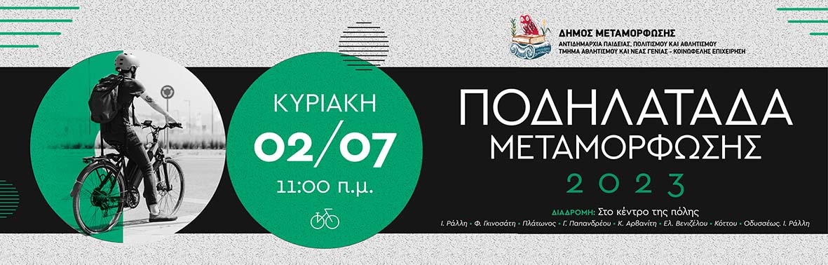 Ο Δήμος Μεταμόρφωσης Αττικής και το Τμήμα Αθλητισμού σας προσκαλούν στη δράση για την πράσινη μετακίνηση, υπό την αιγίδα και της Ελληνικής Ομοσπονδίας Τροχοσανίδας.