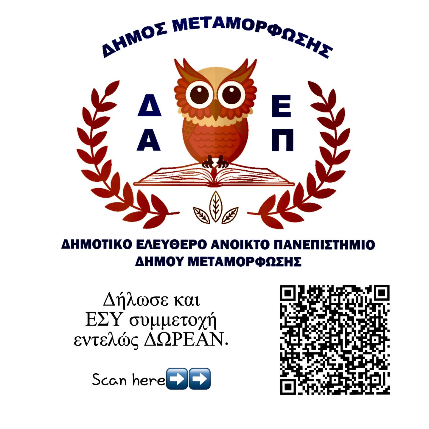 Μην χάσετε την ευκαιρία να εγγραφείτε στο Δημοτικό Ελεύθερο Ανοιχτό Πανεπιστήμιο Μεταμόρφωσης!